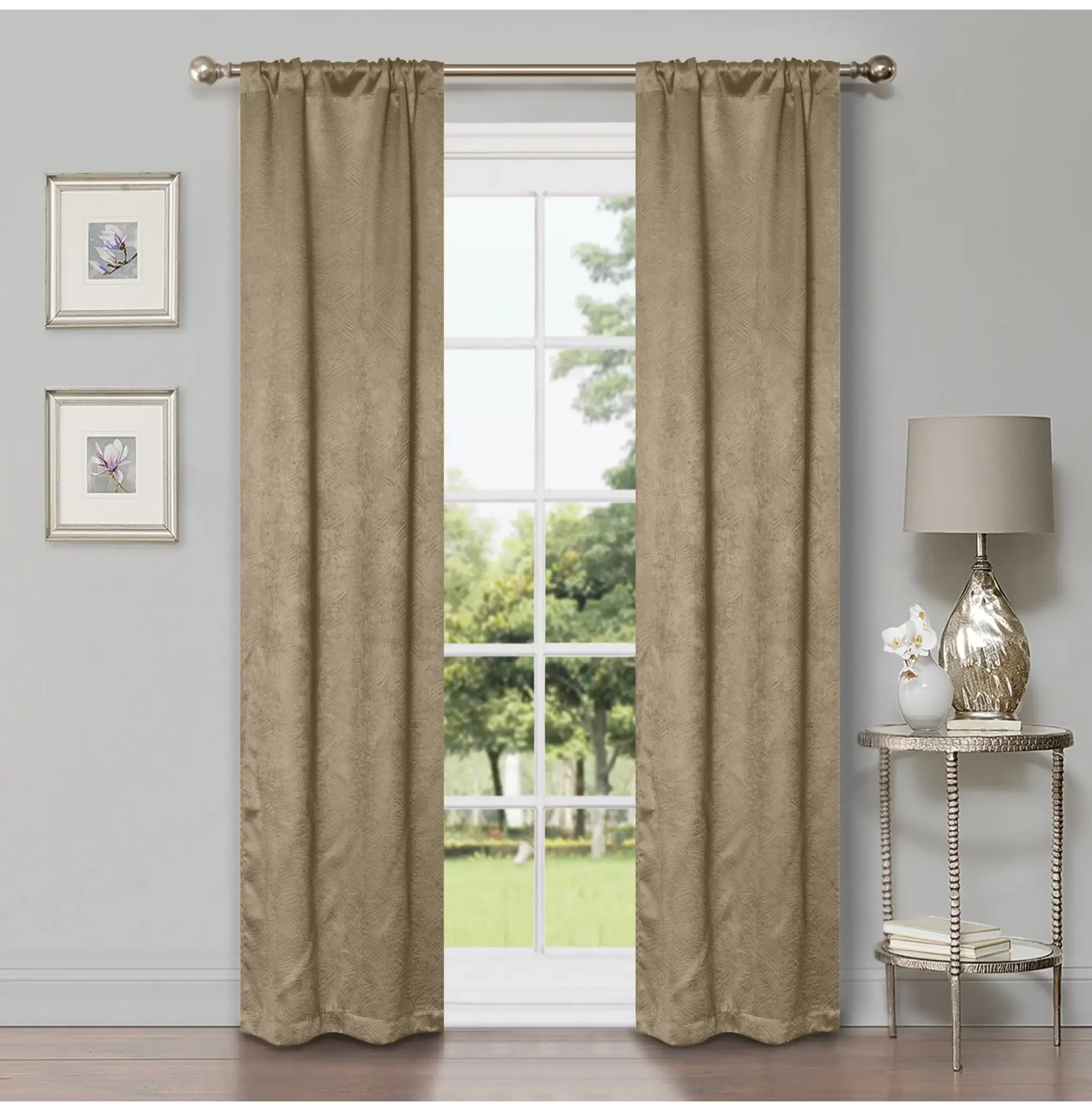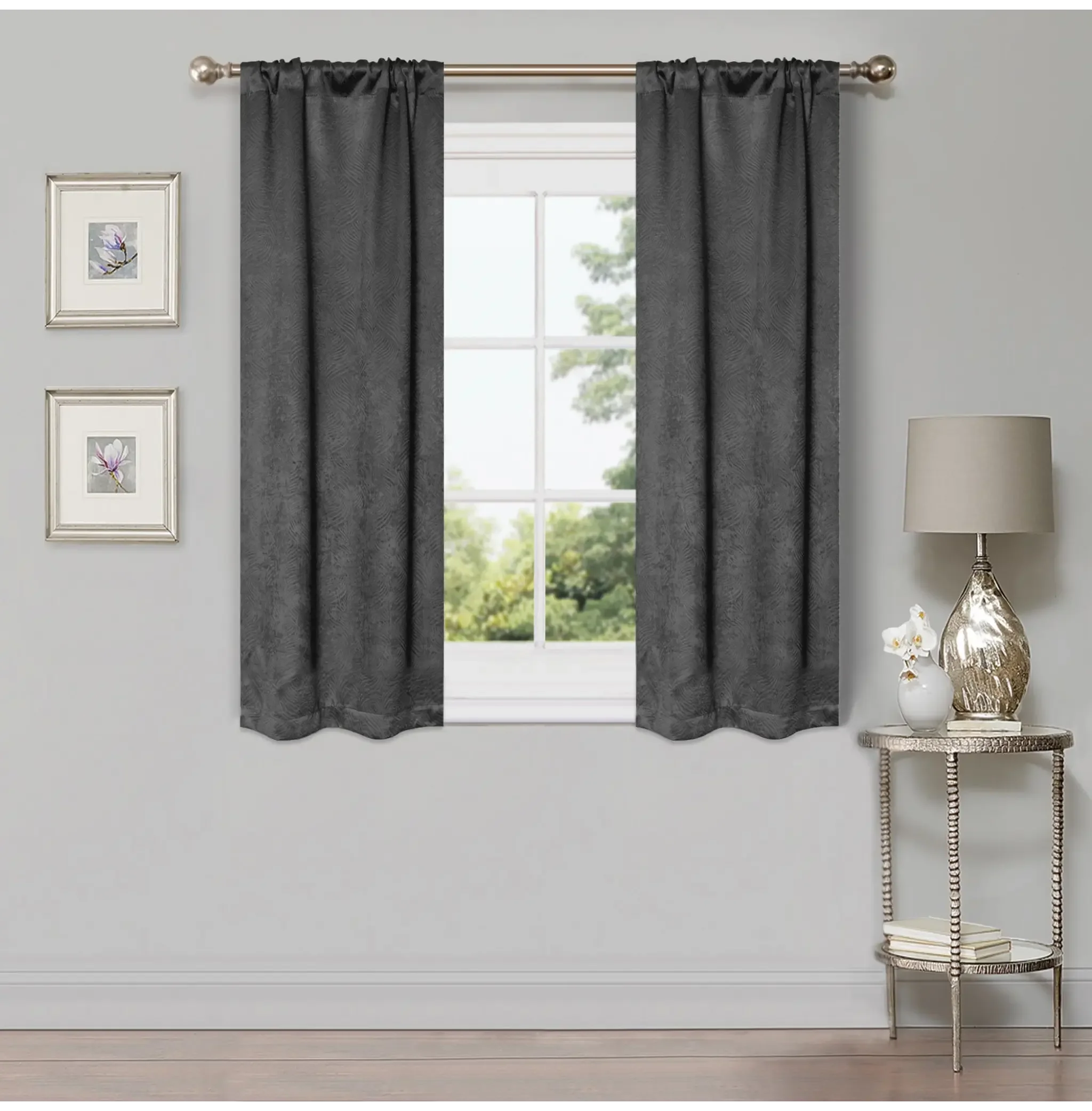 The Waverly Room Darkening Thermal Blackout Curtain set is very nice. The grey color is just the right shade and would fit with any decor. The curtains have a nice texture and were easy to install. These are perfect for any room. I installed mine in my den because they are great at keeping the sunlight out of the room when we are watching tv, enjoying a movie or just taking a nap. I will definitely purchase another pair to put in my room. I think these are great at blocking out light and keeping the room cool as well.