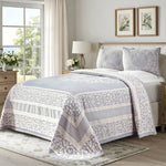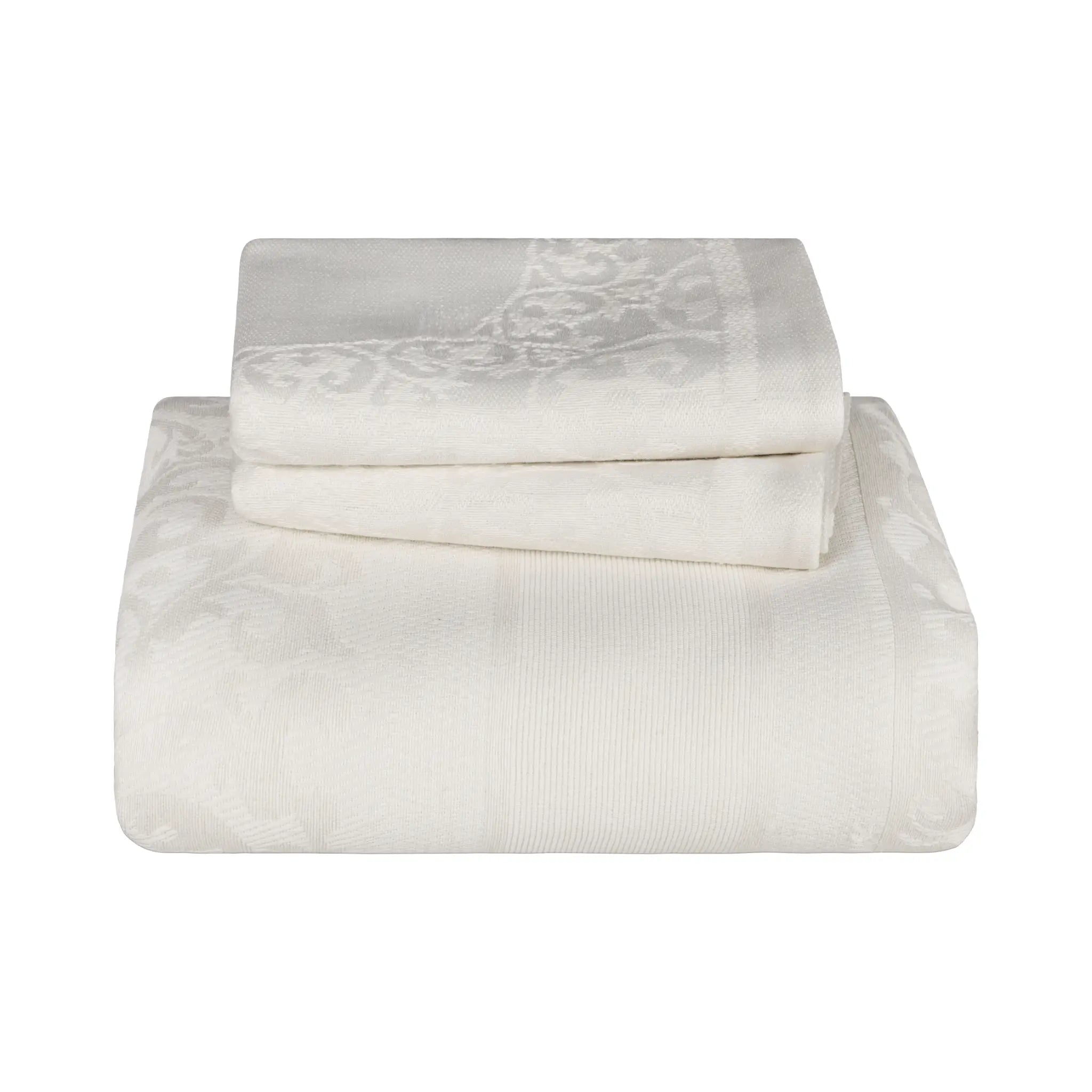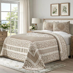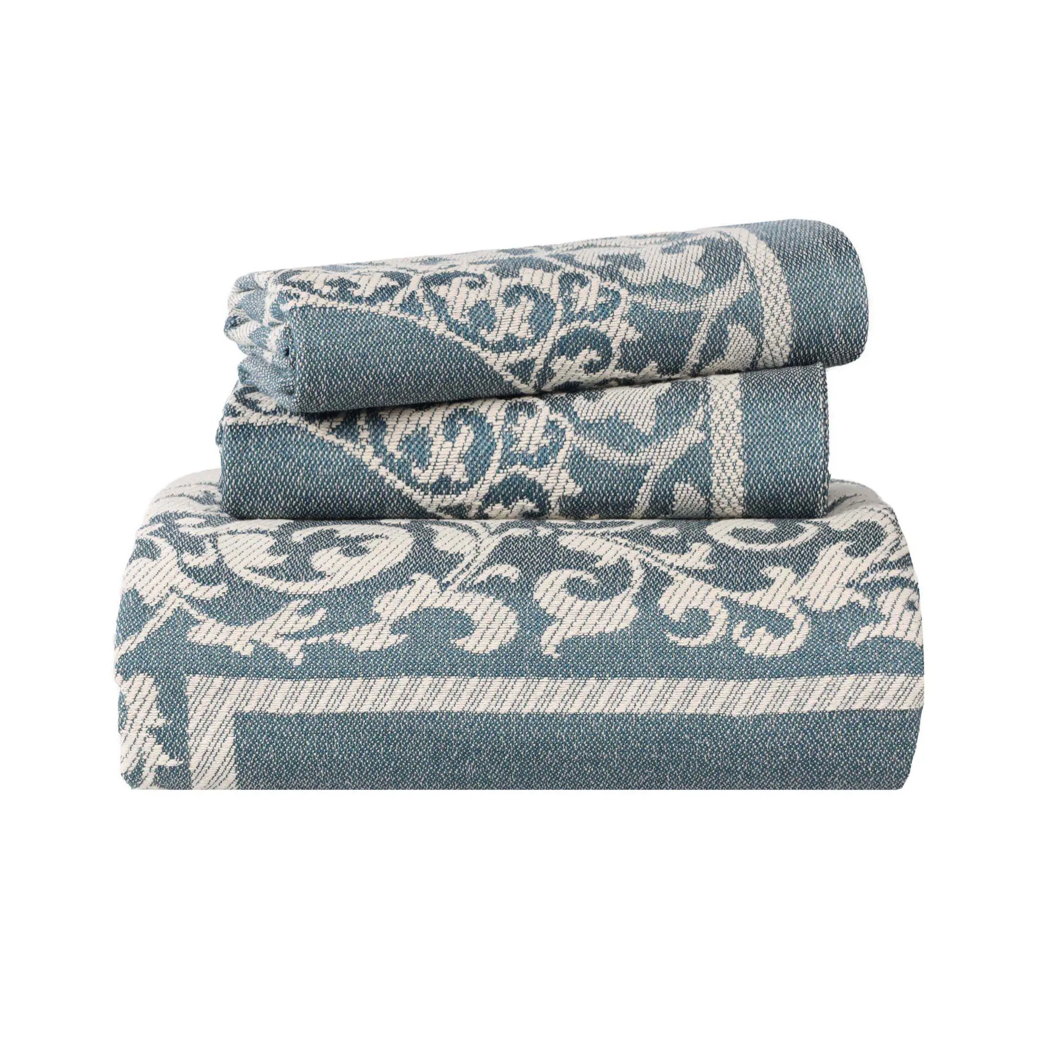 Lightweight Cotton Bedspread Set 3-Piece Lyron Floral Scroll Jacquard