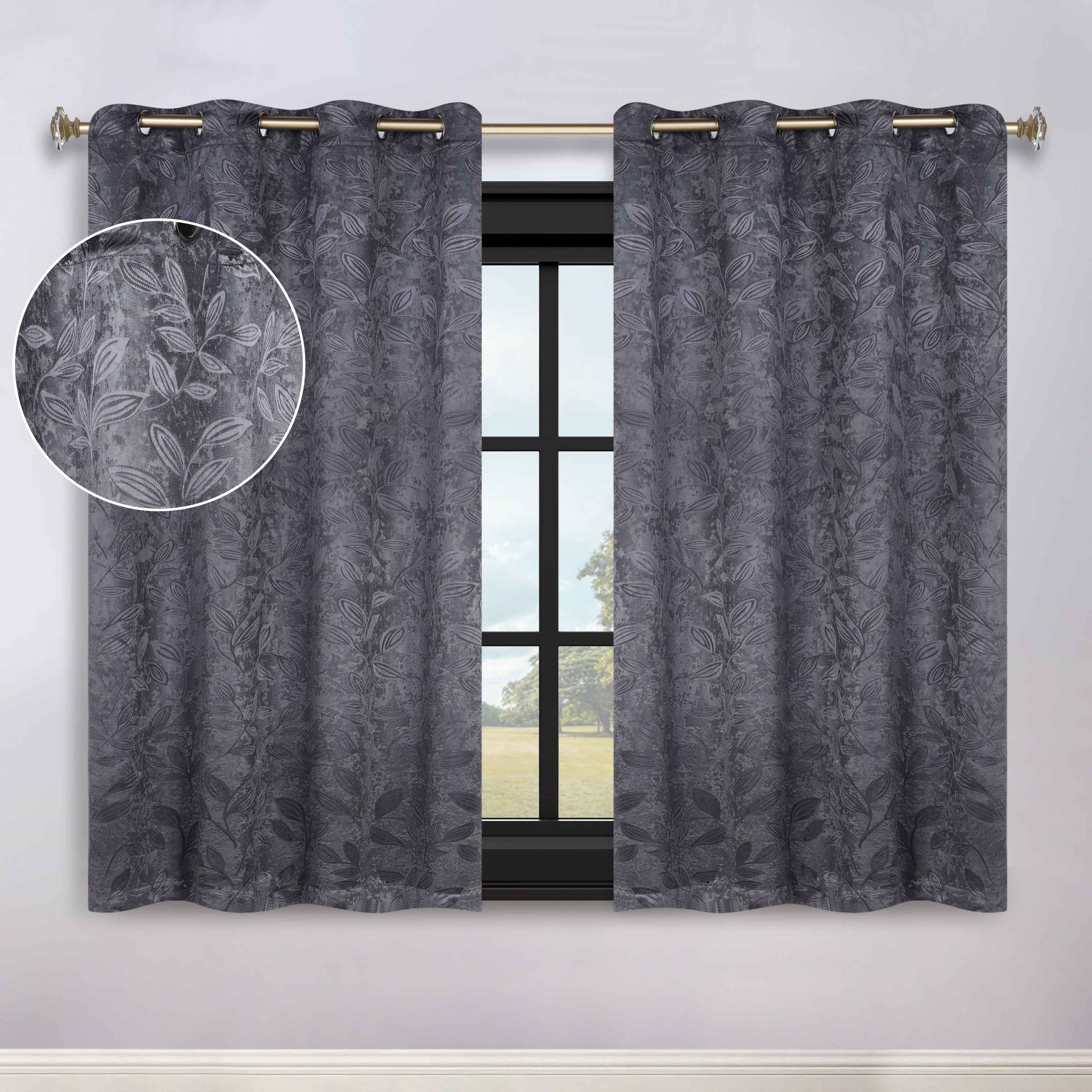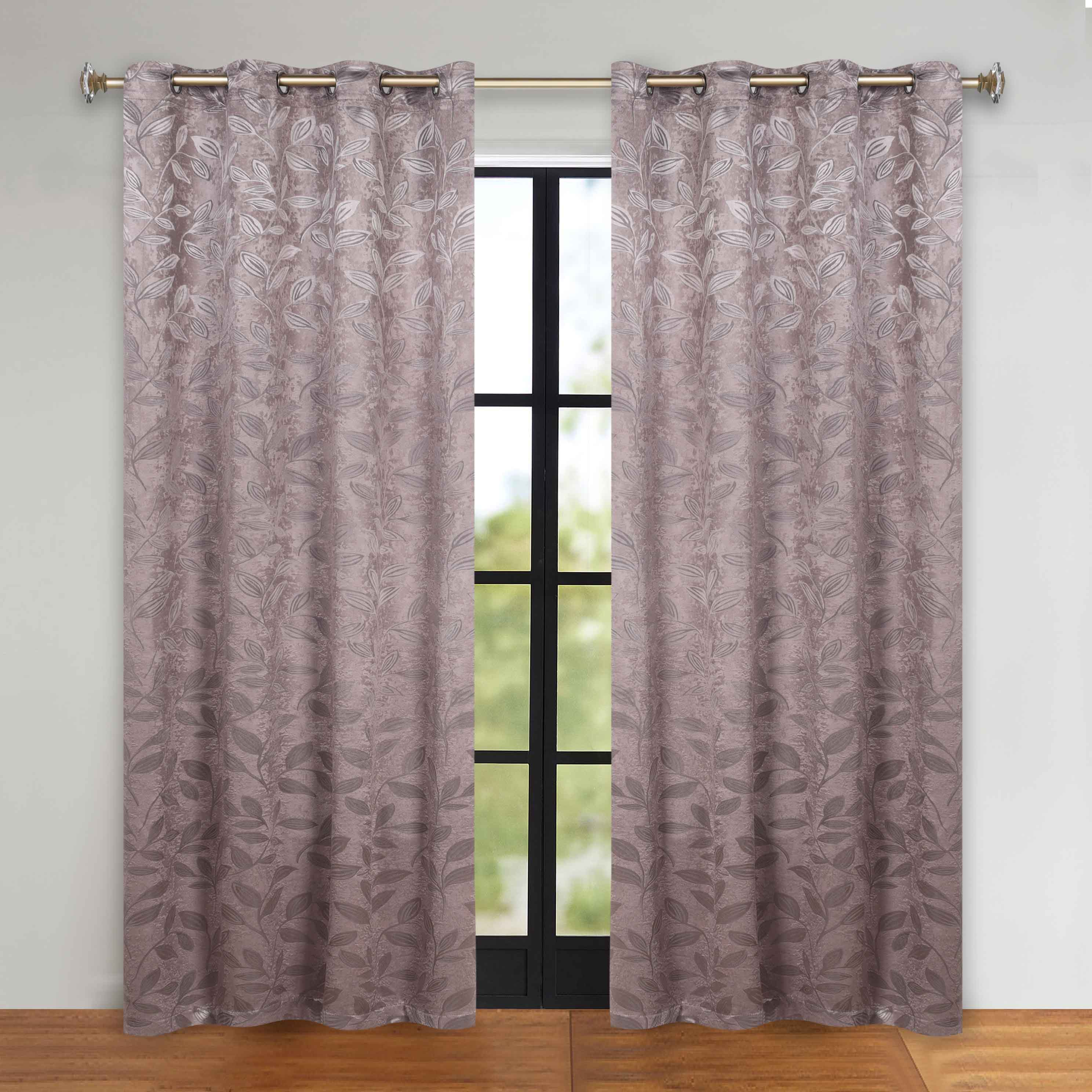 Blackout Curtains Leaves Pattern Room Darkening Grommet 2 Panels
