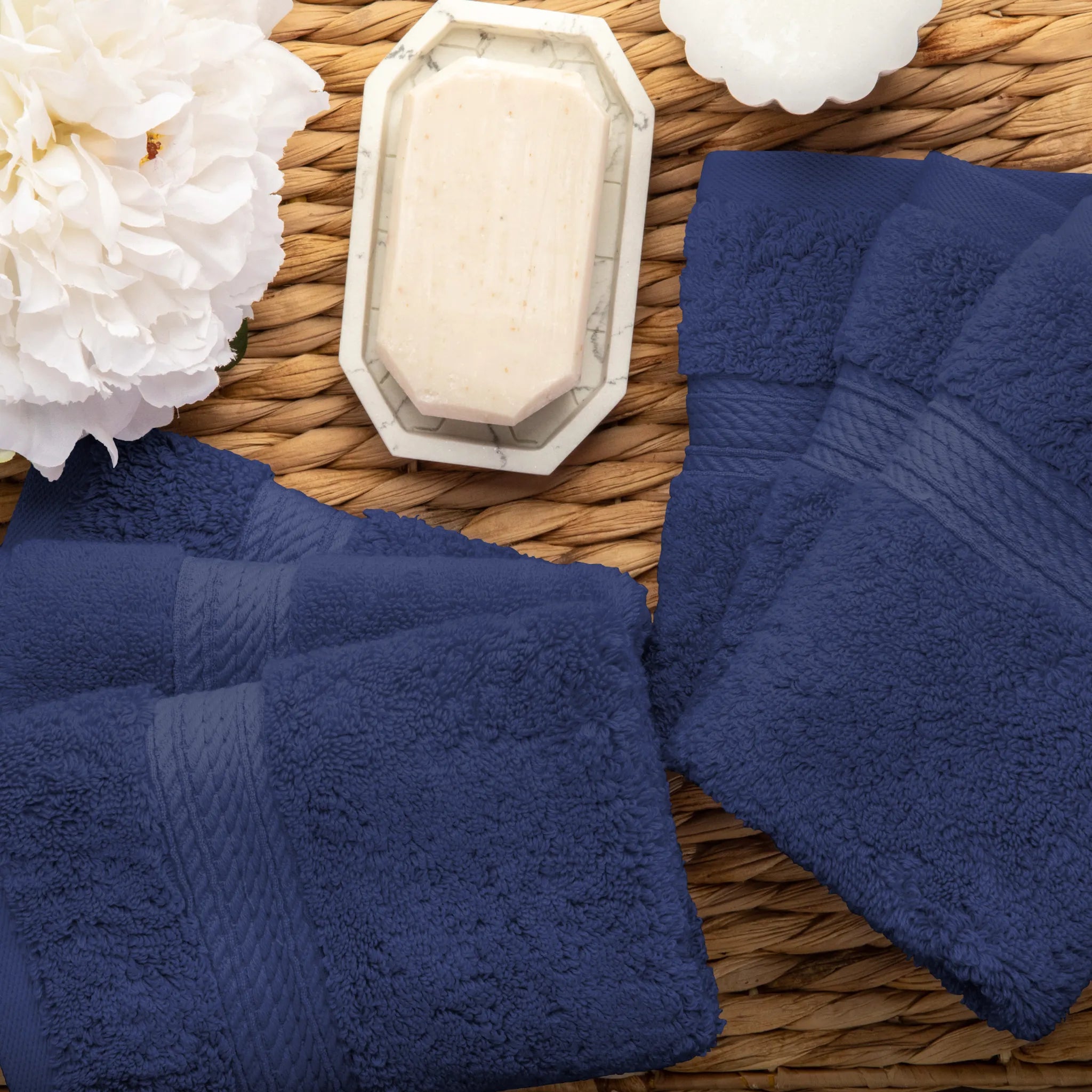 Durable Design: Features Secure Hemmed Edges and Resilient Construction to Maintain the Luxurious Feel of These Cotton Face Towels After Countless Washes.