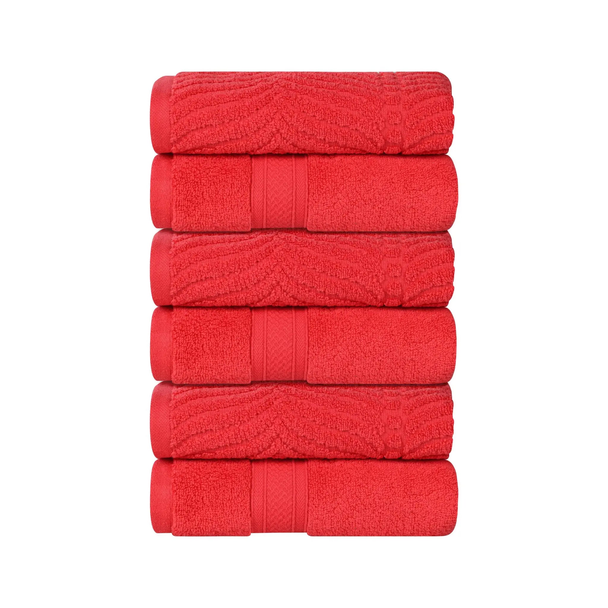 Chevron Zero Twist Solid and Jacquard Soft Cotton Hand Towel Set of 6