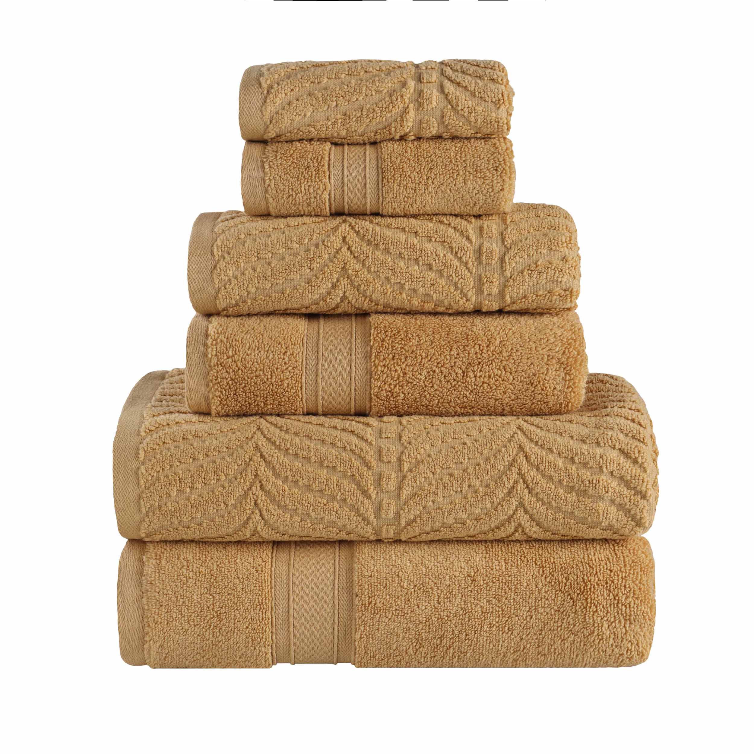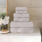 Chevron Zero-Twist Cotton Jacquard and Solid Towel Set 6 Piece
