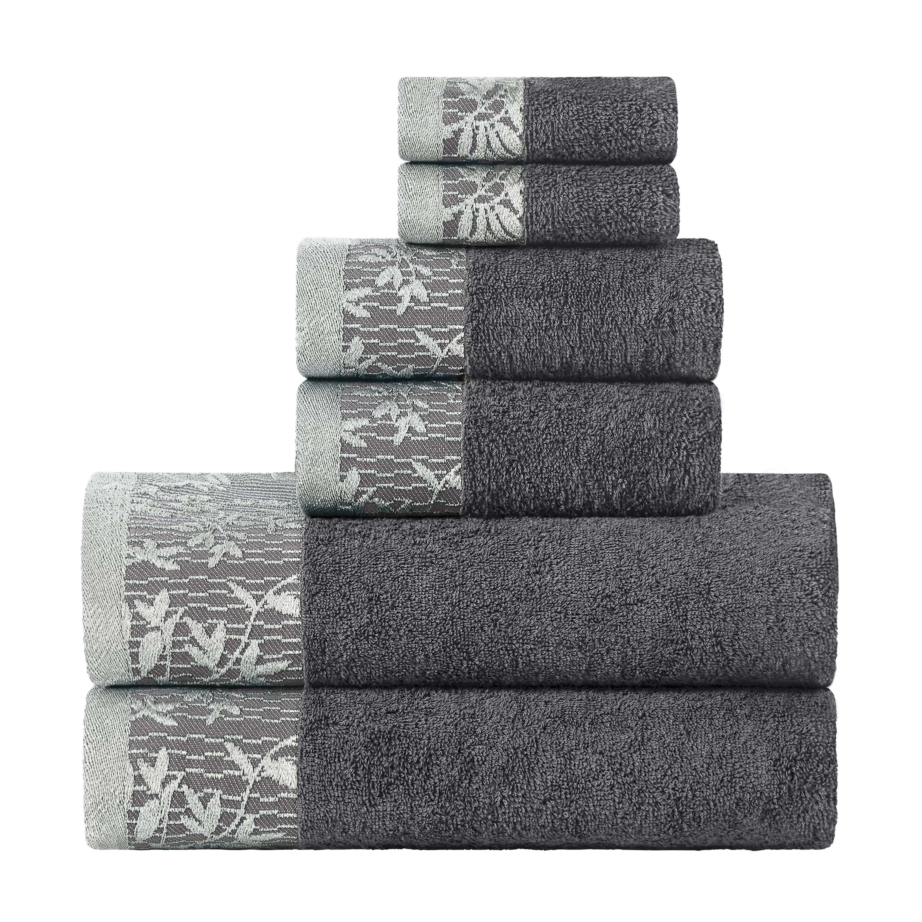 Introduce a touch of timeless elegance to your home with the Wisteria 6-Piece Towel Set. As one of our most popular floral bath towel sets, this collection features a beautifully detailed jacquard floral border. This stylish, decorative bath towel set is crafted to be a stunning focal point in any master or guest bathroom.
