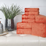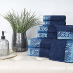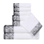Bring a touch of nature-inspired beauty to your home with the Wisteria 8-Piece Towel Set. These decorative bath towel sets feature a stunning jacquard floral border that adds a sophisticated and stylish accent to any bathroom. Crafted from 100% cotton, this complete bathroom towel set is perfect for daily use or for impressing guests.