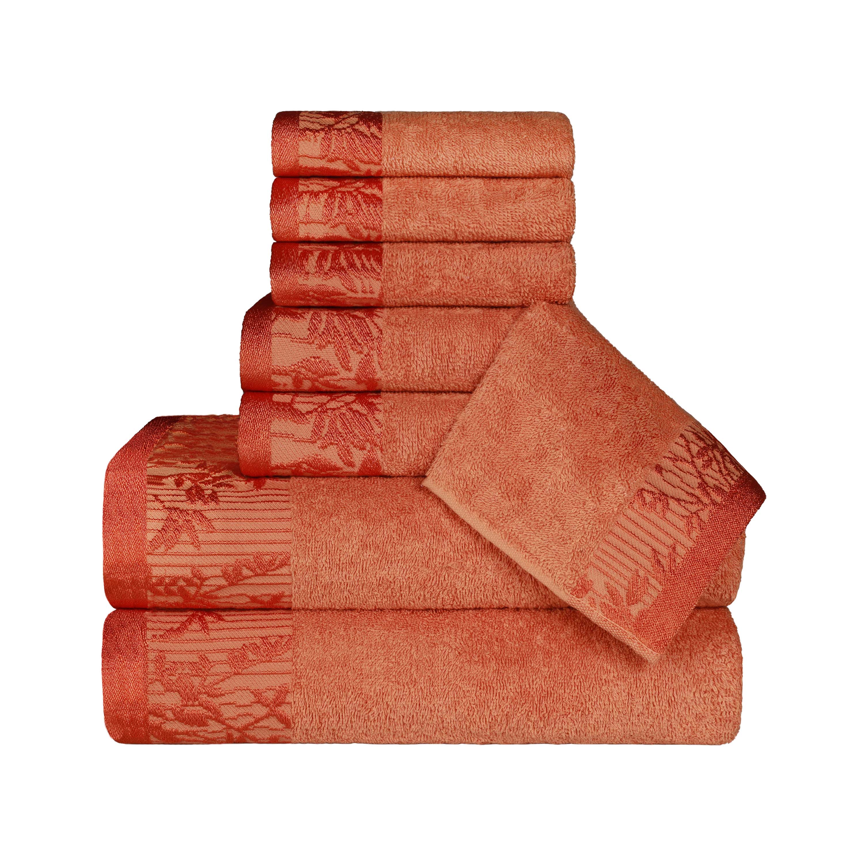 Jacquard weaving allows for intricate, durable patterns like the floral design on this set to be woven directly into the towel's border. This not only creates a beautiful, textured, and decorative look but also adds strength and stability to the towel's edges, preventing fraying and ensuring it looks great for years.