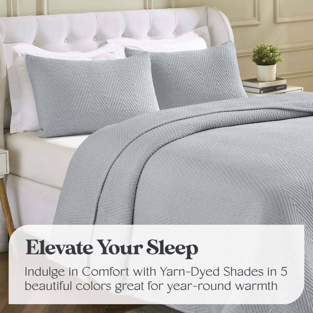 - Additional Features: Thick coverlet material provides maximum warmth for year-round comfort. Intricate woven design adds a rich layer and subtle dimension to your bed. Exquisitely crafted texture elevates your bedroom, infusing it with contemporary sophistication.