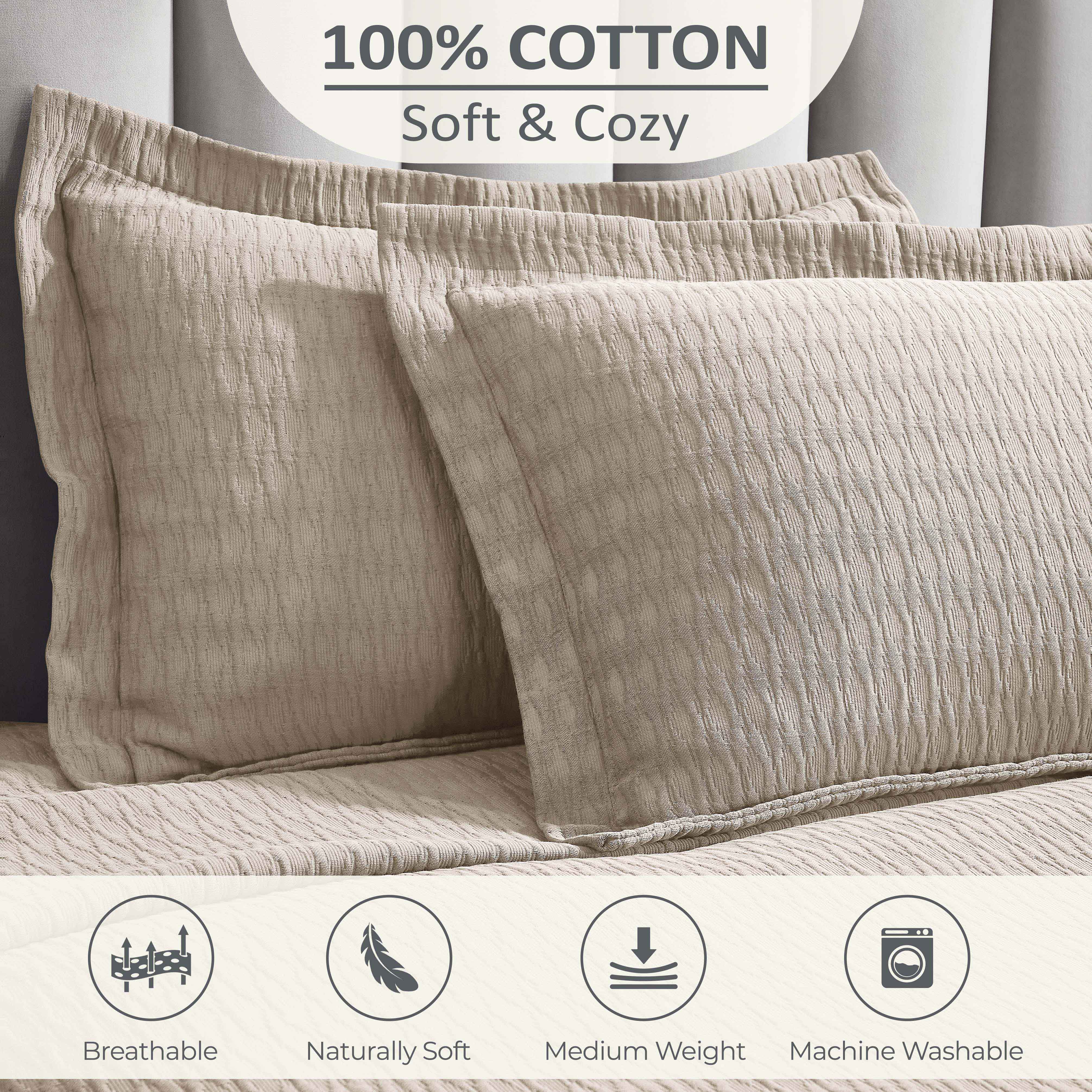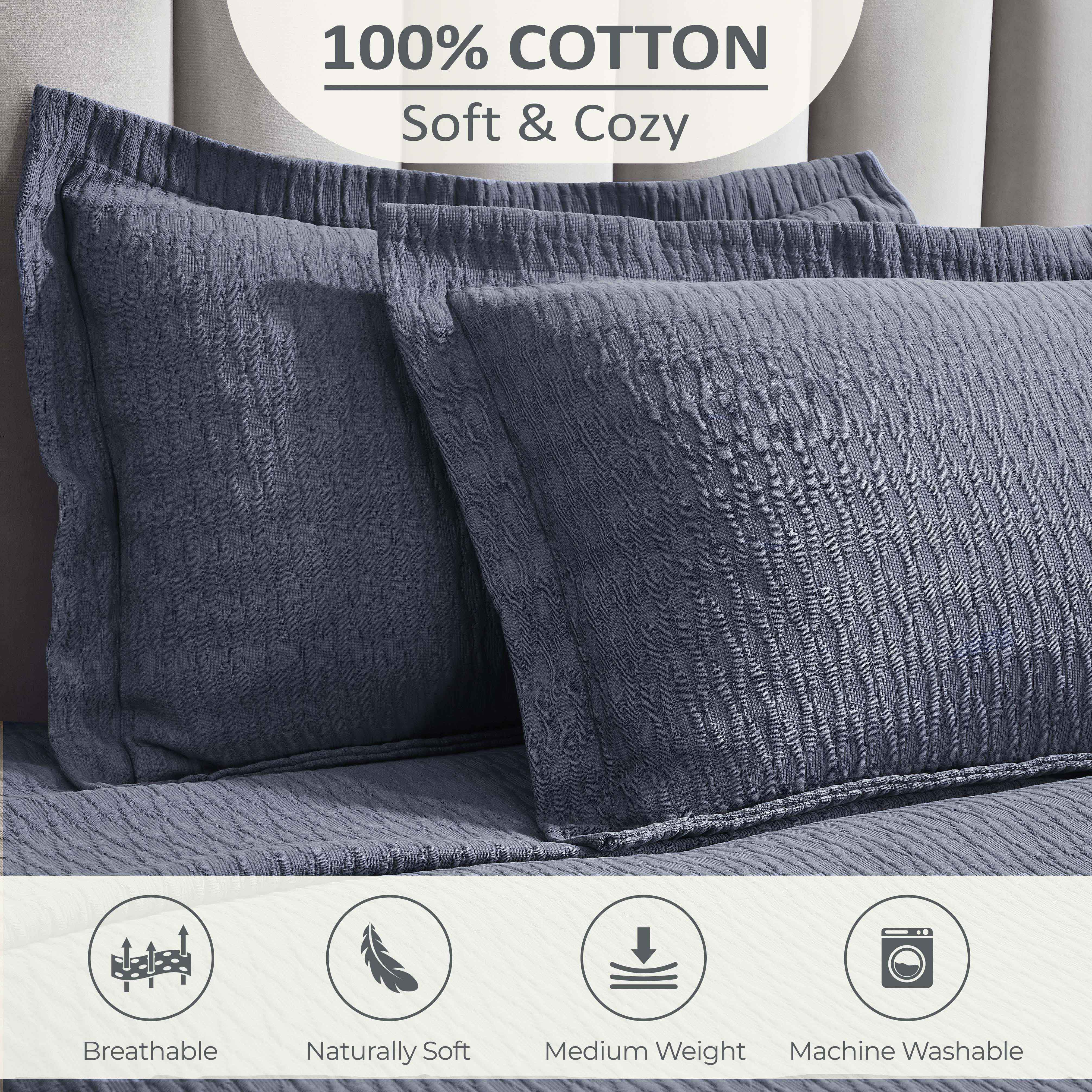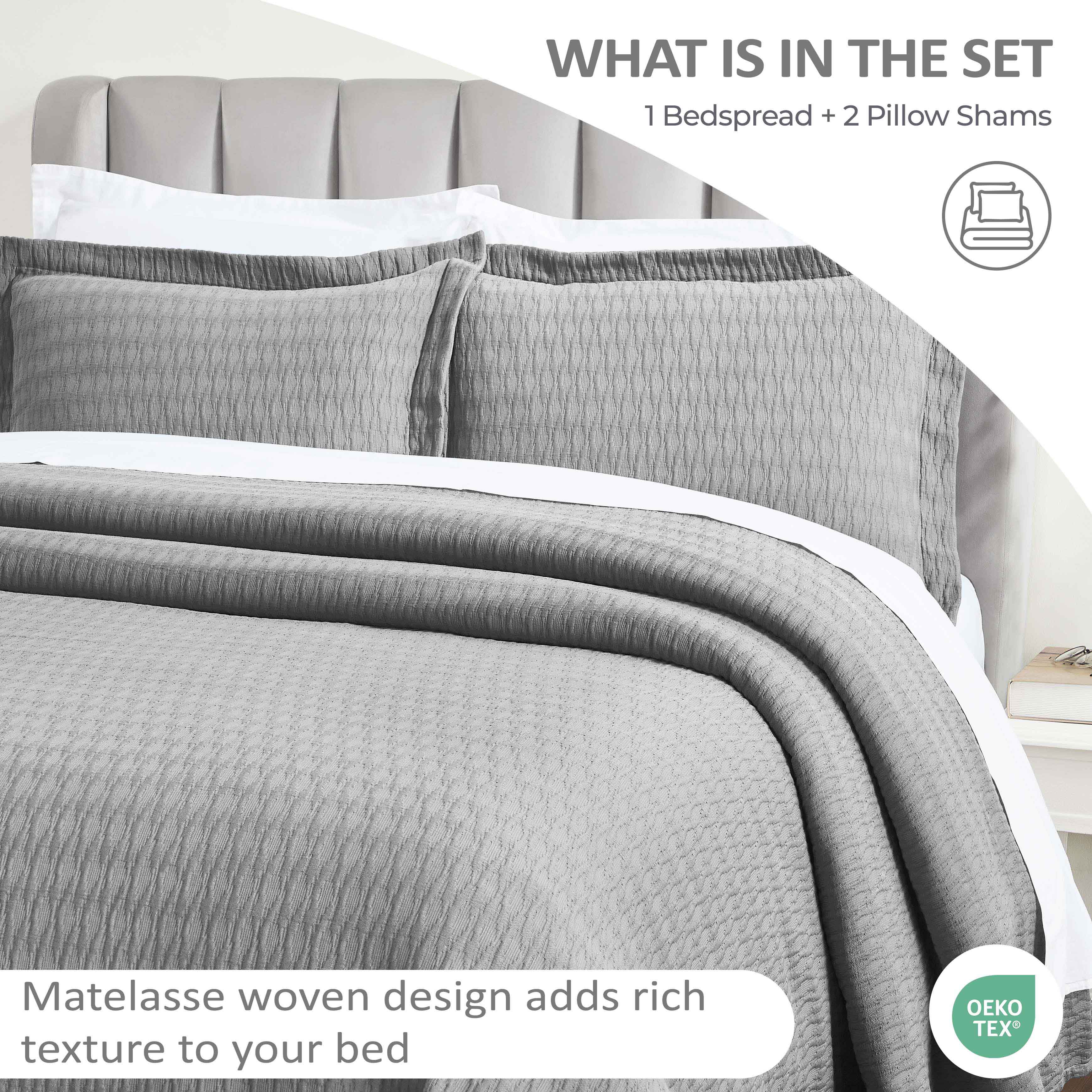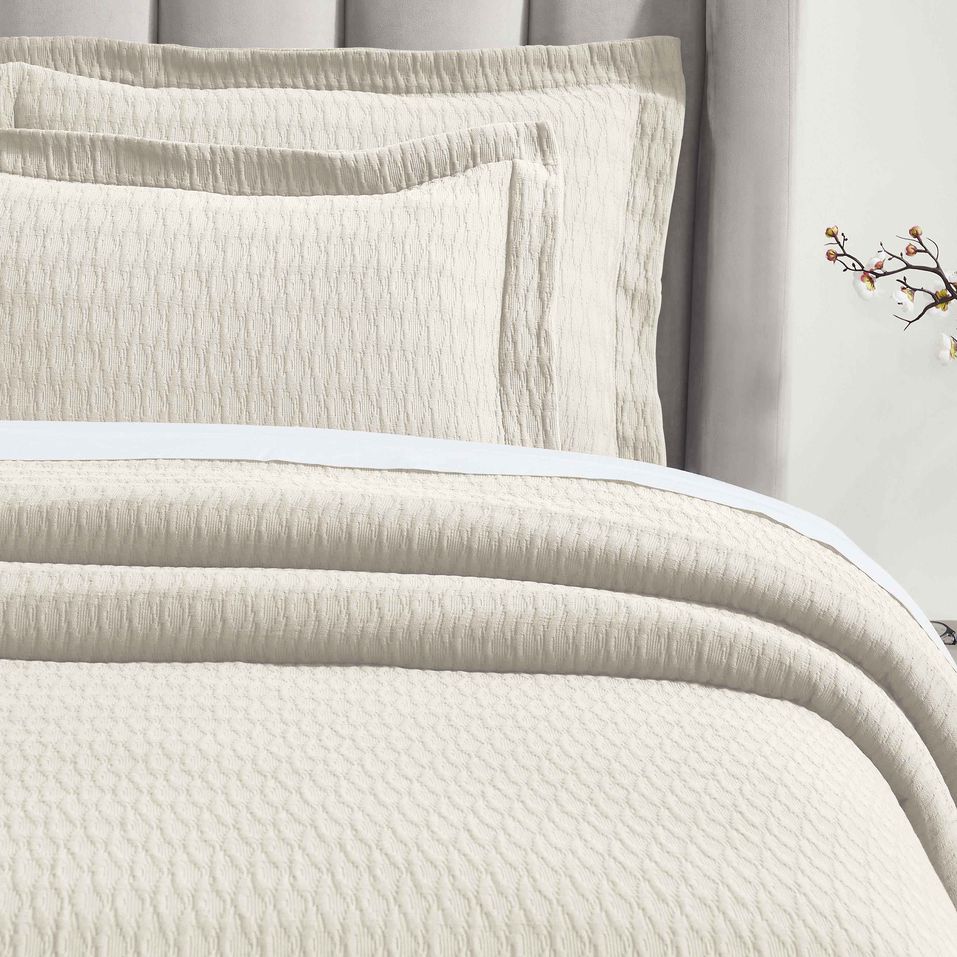 Lightweight Cotton Bedspread Sets 3-Piece Calvert Diamond Matelassé Jacquard