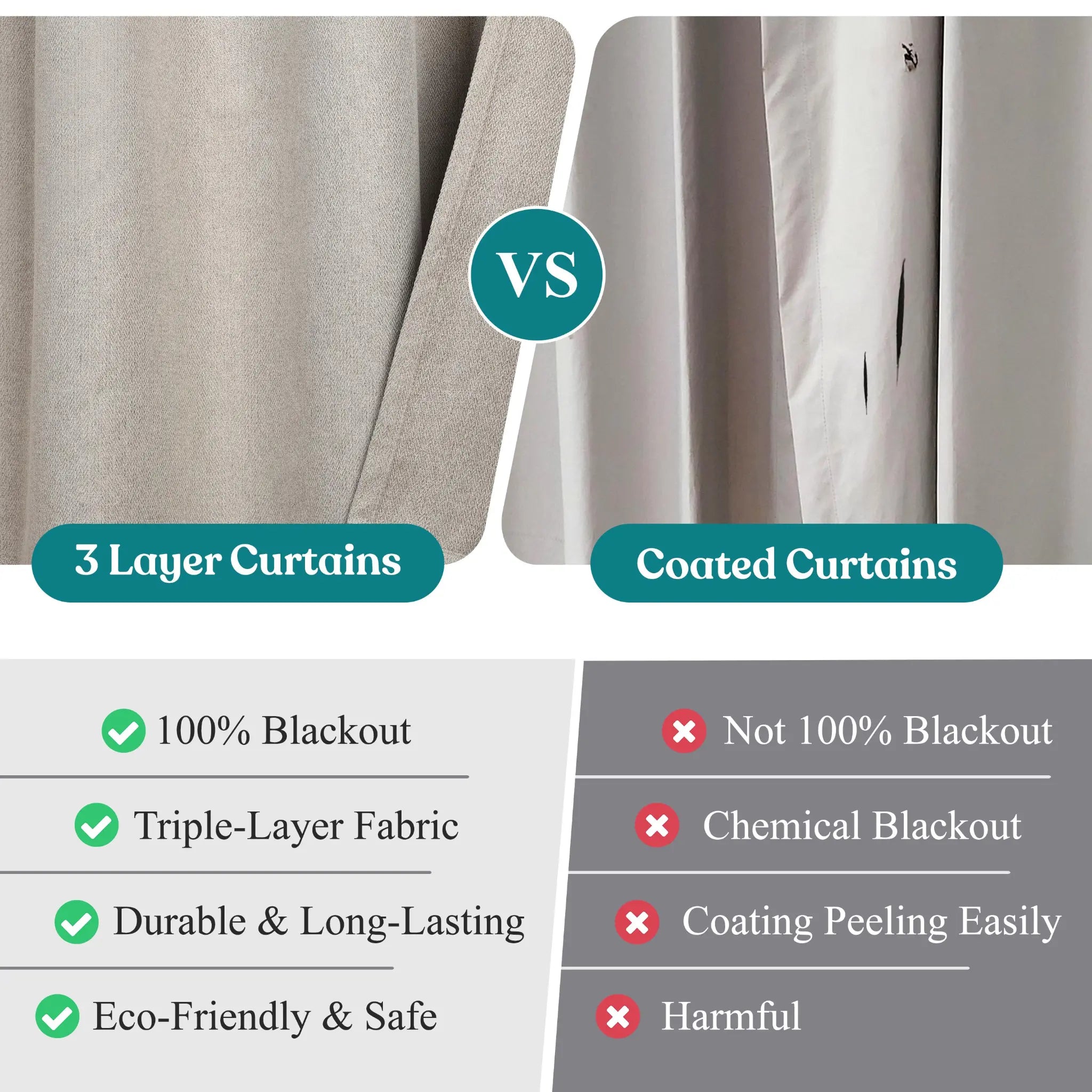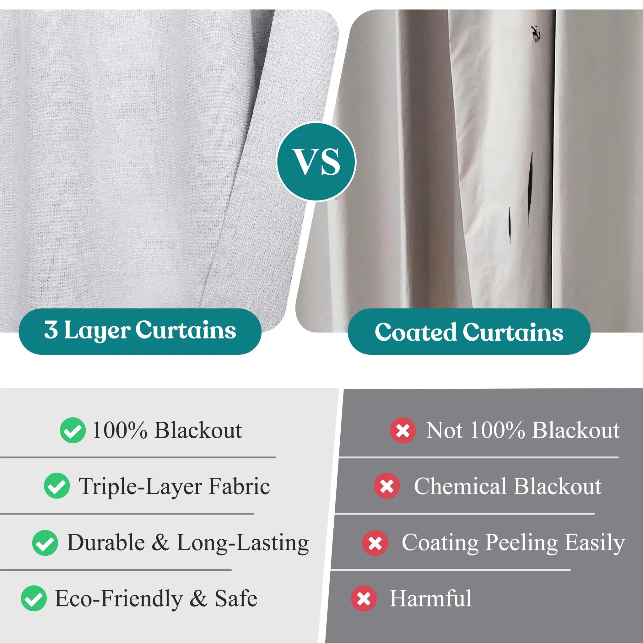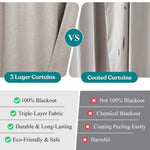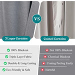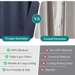 The curtains feature a thick, three-layer design that provides excellent insulation, keeping rooms at a comfortable temperature year-round. They block 100% of sunlight and UV rays for complete darkness, reduce noise, and enhance privacy by preventing outside views.