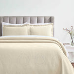 Bring a touch of luxury to your bedroom decor with our Peploi Bedspread Set. Elegant and durable, this bedspread is made from luxuriously soft cotton. Featuring a classic floral wreath matelasse design, this jacquard bedspread brings texture and vintage style to your bedroom. This beautiful set is available in a variety of color options to match with your bedroom decor. Matching pillow shams are included in this set for a polished and coordinated look. Give your master bedroom, daybed or guest room the perfect decorative accent with this beautiful bedspread set.