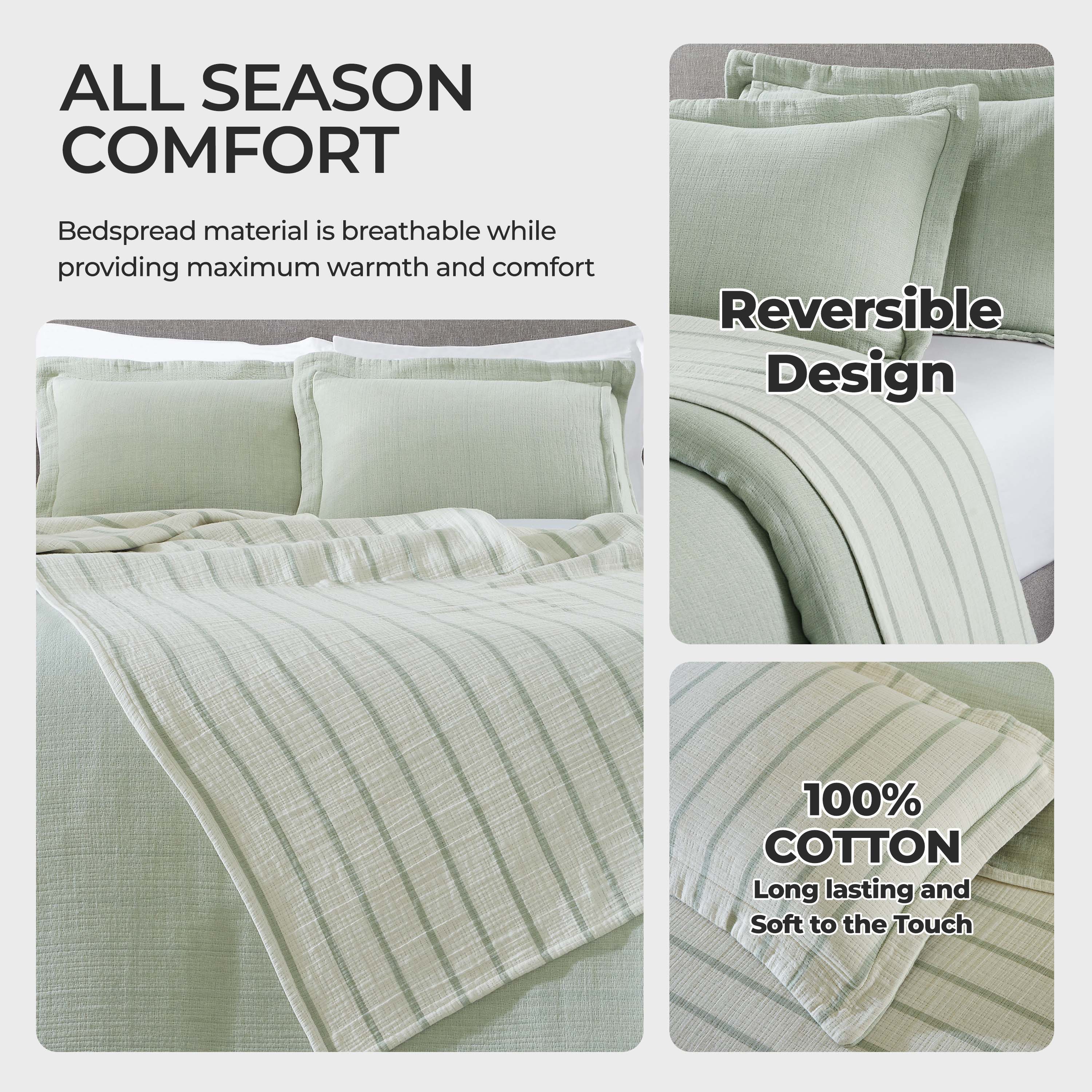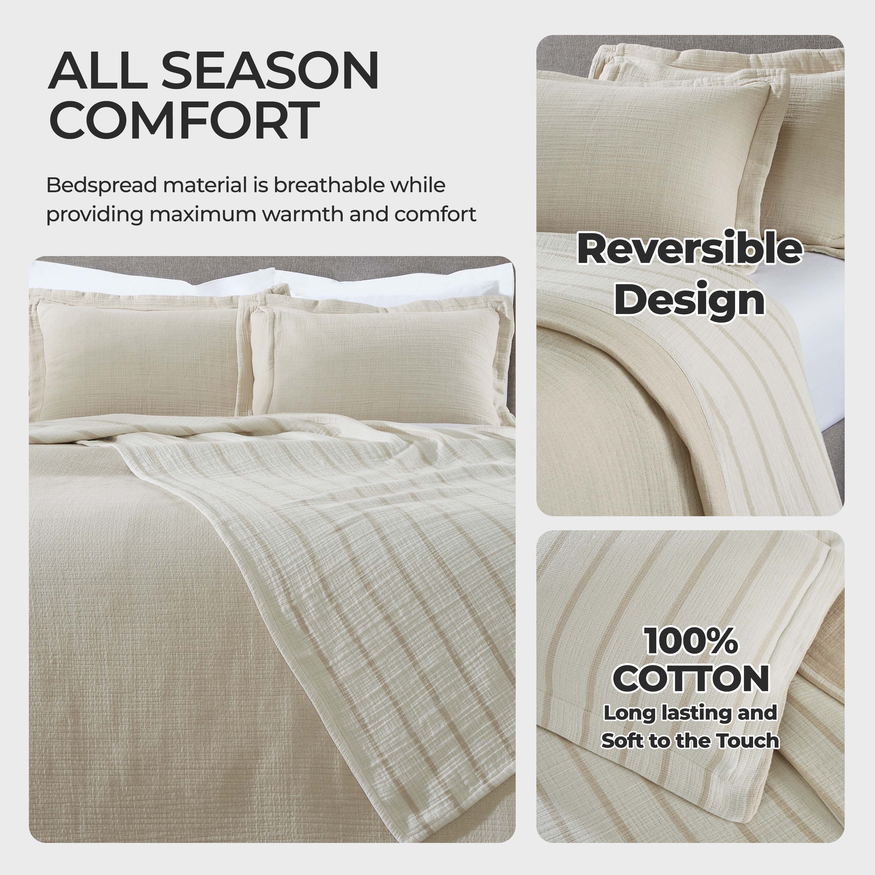 - Set Includes: One (1) Bedspread and Two (2) Pillow Shams.