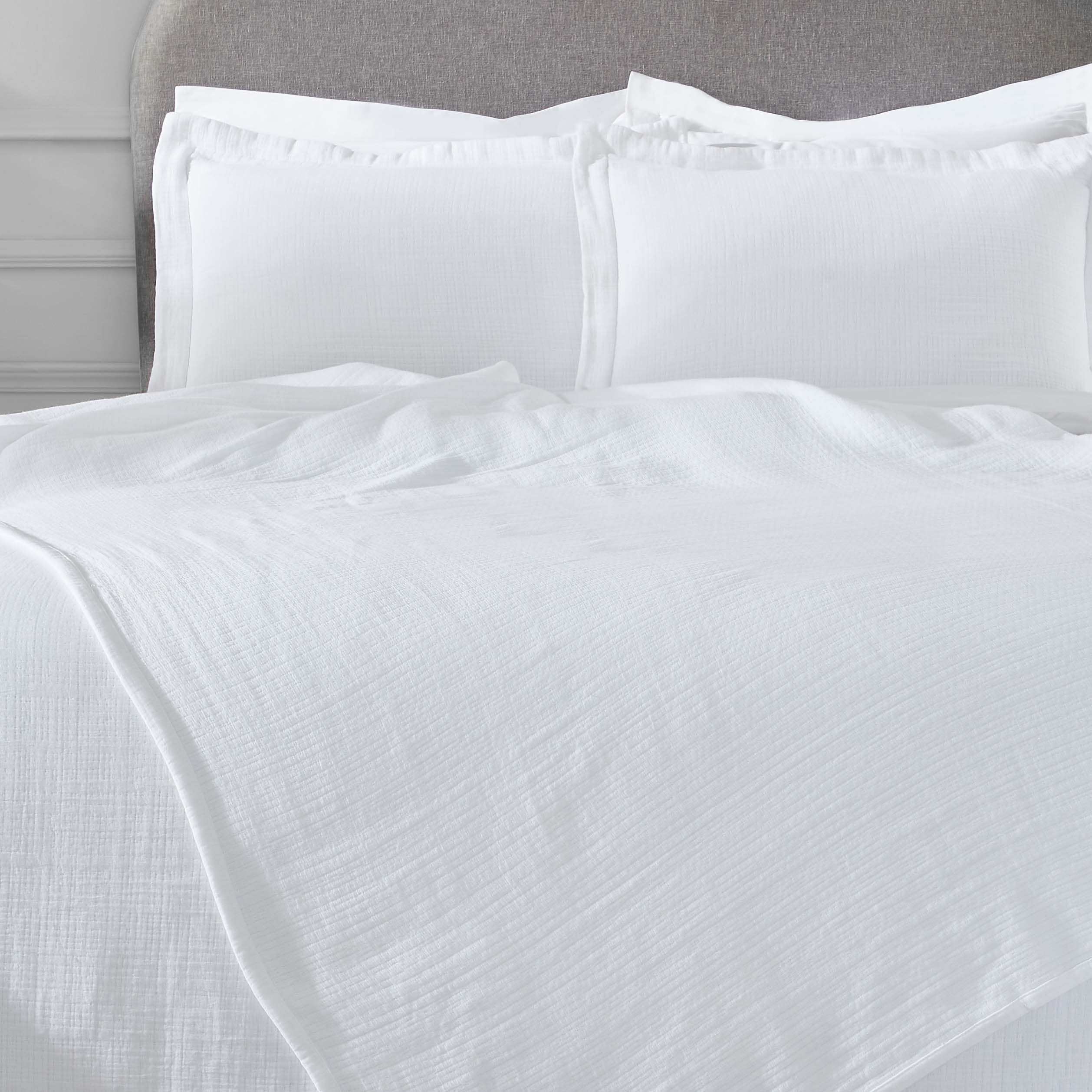 Our cotton bedspreads are machine washable. As a helpful tip, our bedspreads are made from natural fibers and you should expect a 5%-8% shrinkage due to the nature of the fibers when washing. Shrinkage can be reduced by always washing in cold water and drying in low heat. For the most luxurious results, always follow care label instructions.