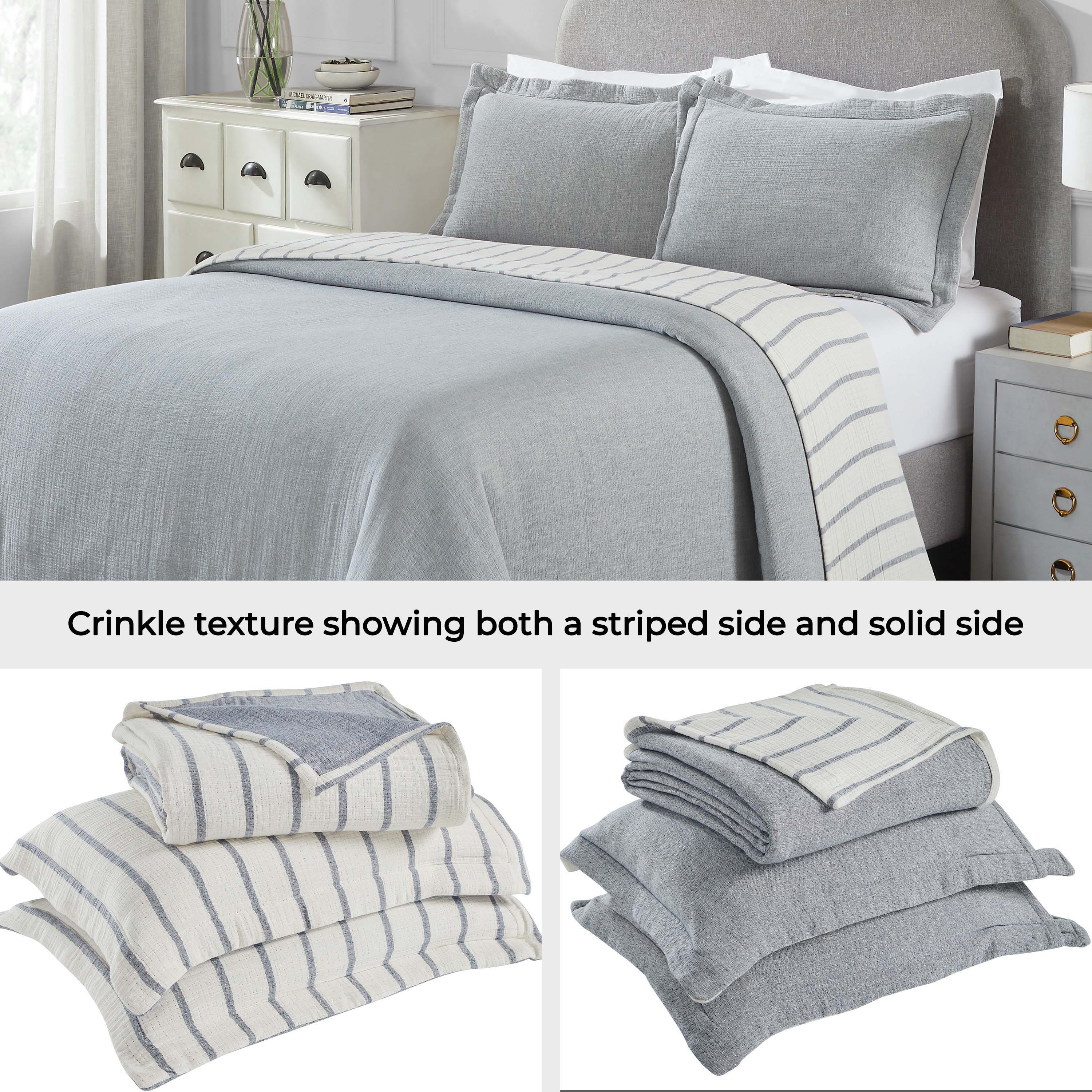 - Pattern: Reversible design with a crinkle texture; Displays both a striped and solid side.