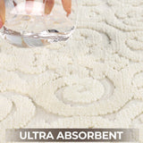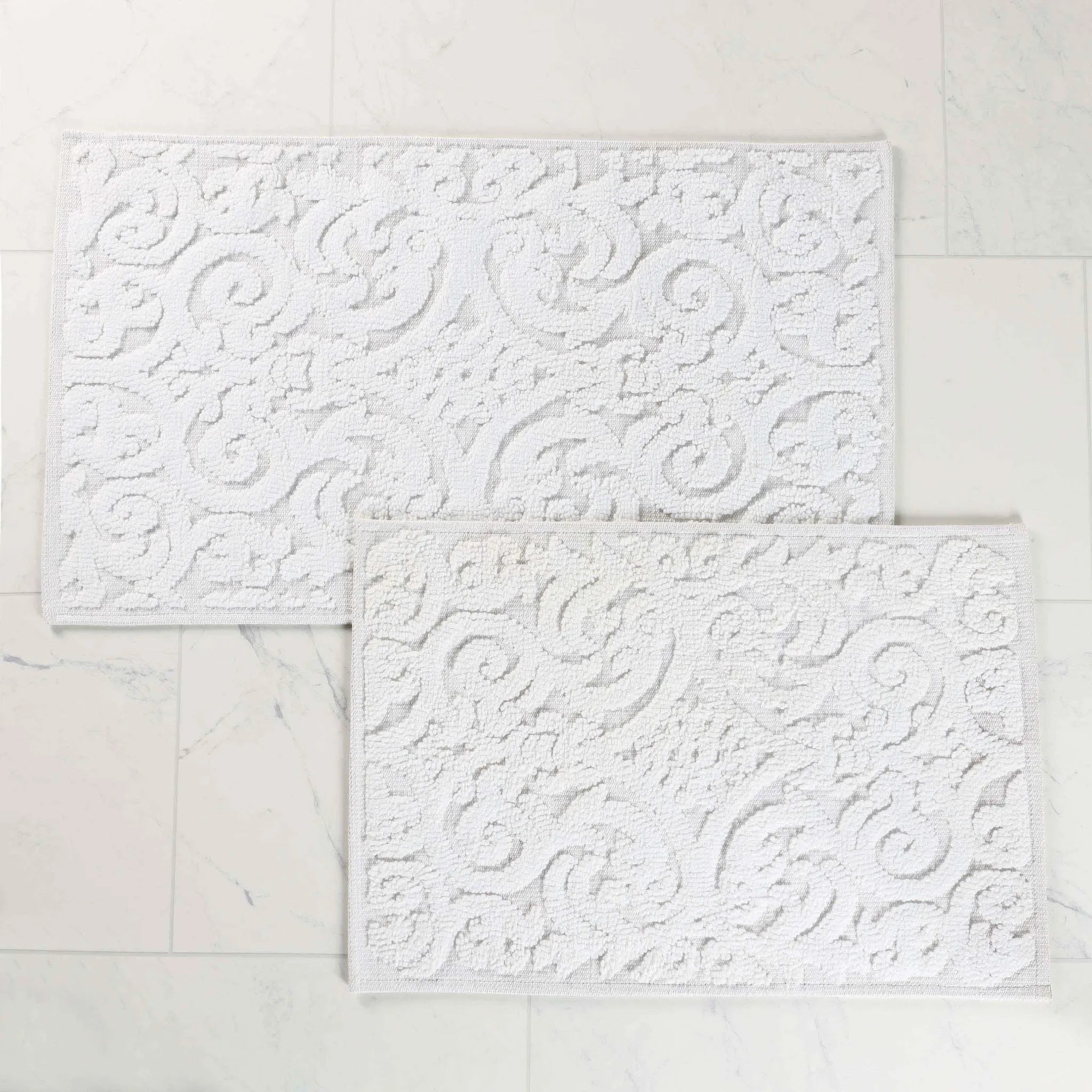 Venere Floral Scroll Textured Machine Washable Bath Rugs, Set of 2