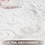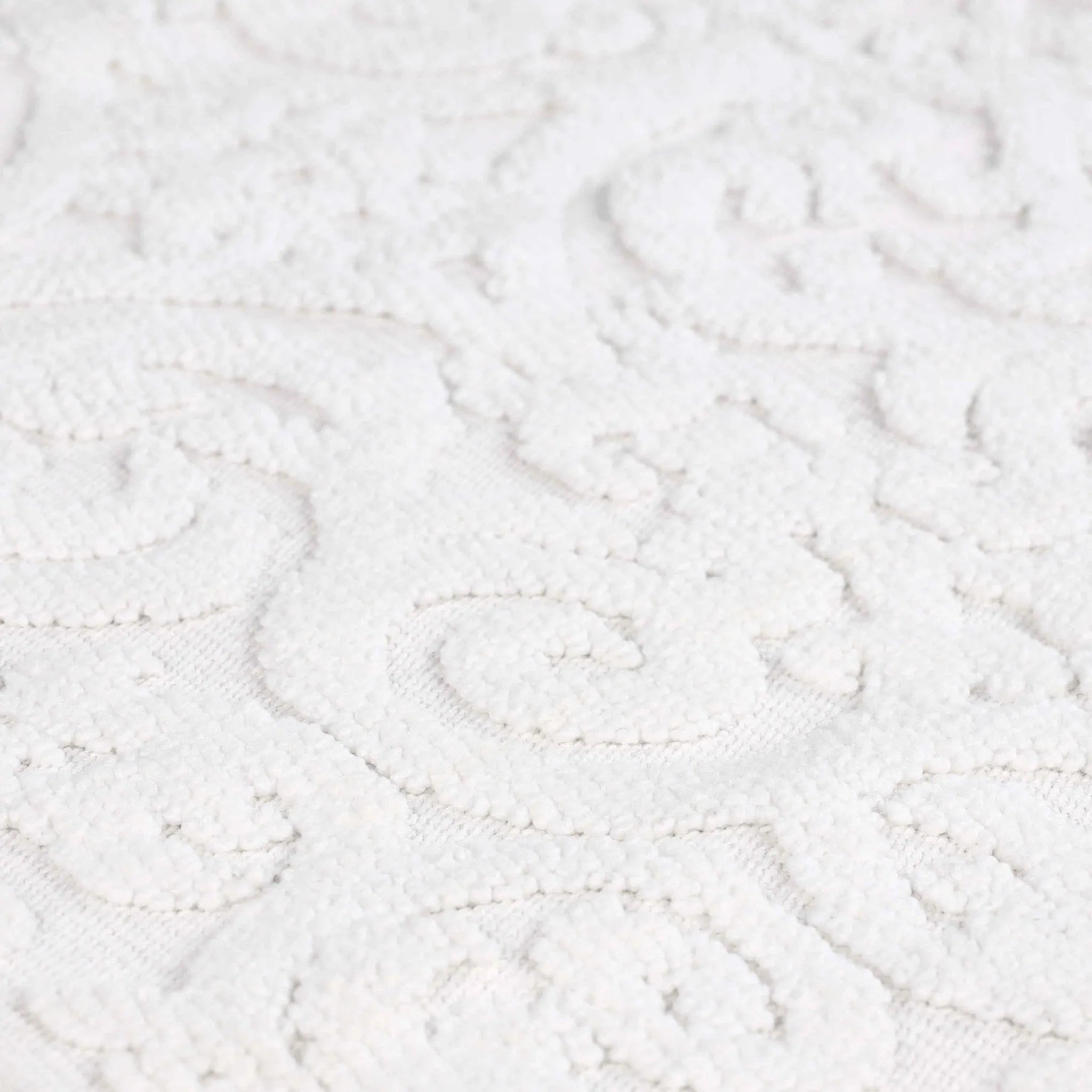 Indulge in the exquisite comfort and timeless elegance of our Venere Floral Scroll Bath Rug Set. This meticulously crafted ensemble of two rugs features a sophisticated jacquard floral scroll pattern, interwoven with a plush high-low pile that adds captivating dimension to your bathroom sanctuary.