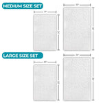 - Medium Bath Rug Set: 17" Wide x 24" Long, and 20" Wide x 32" Long.