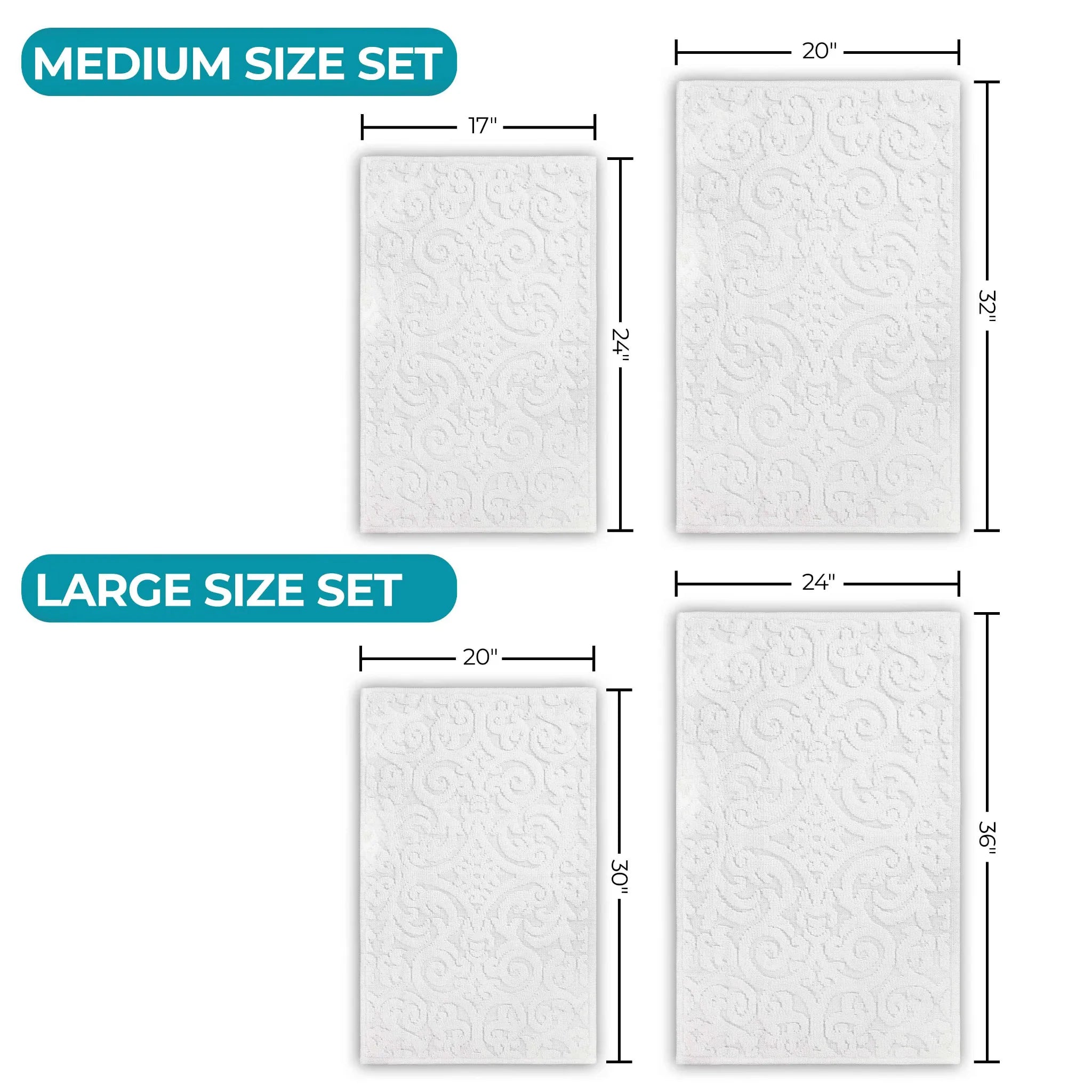 - Large Bath Rug Set: 20" Wide x 30" Long, and 24" Wide x 36" Long.