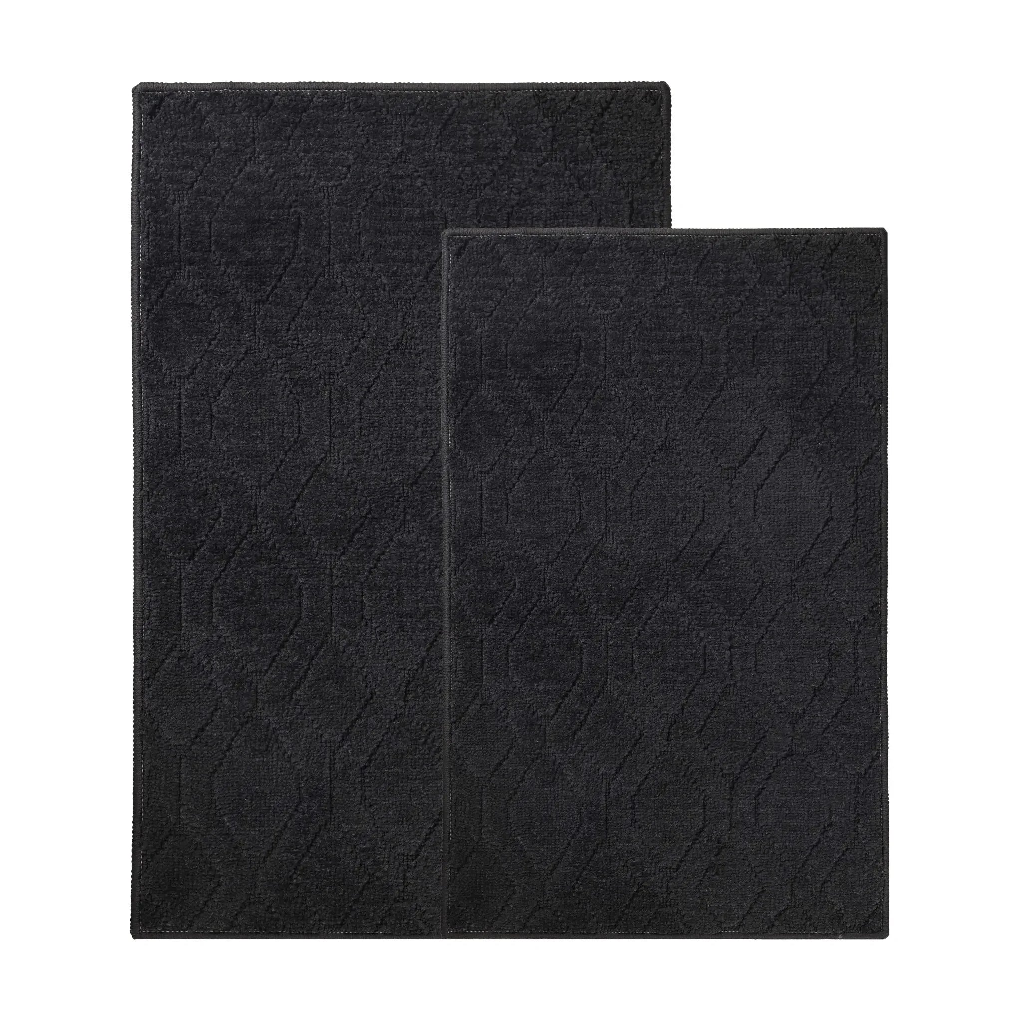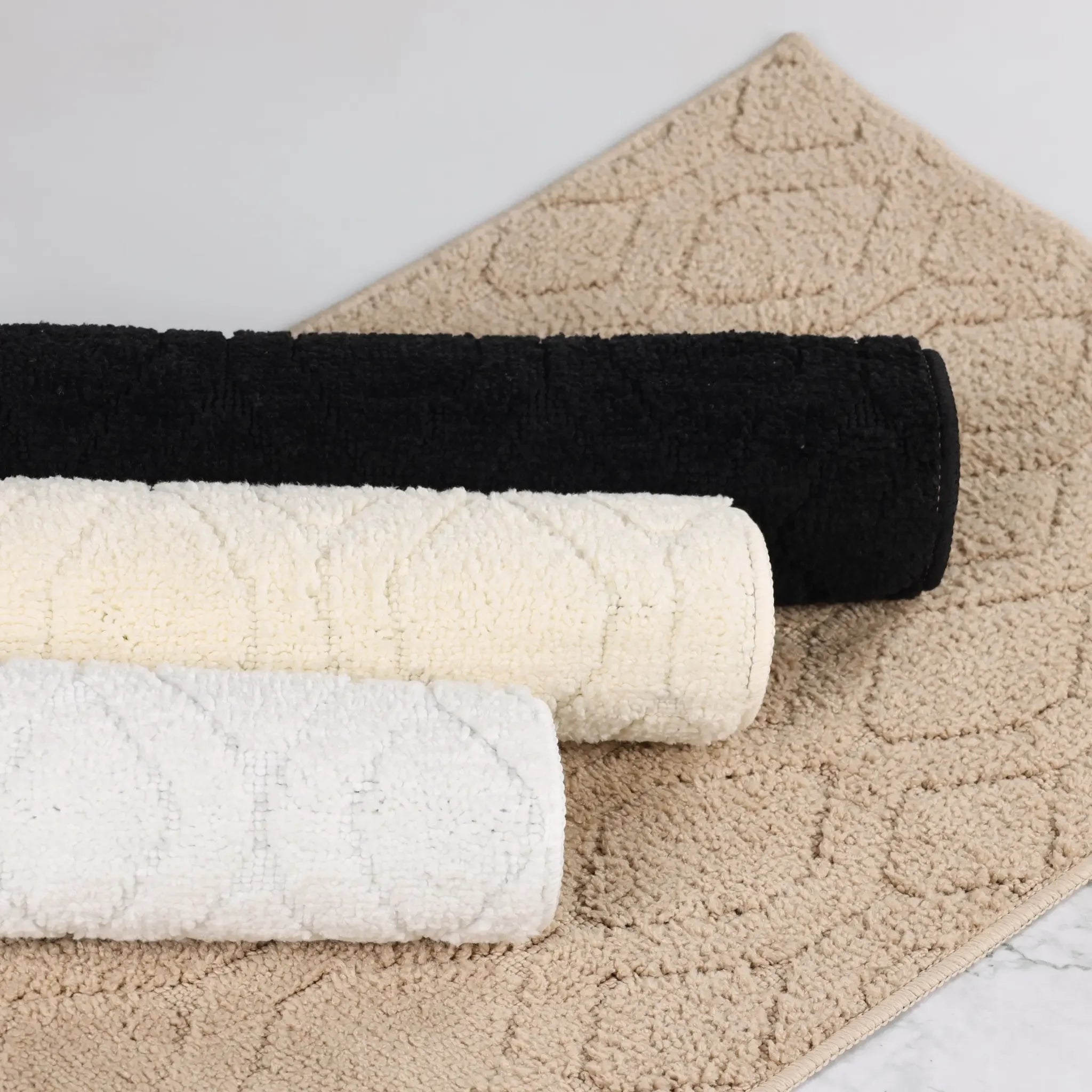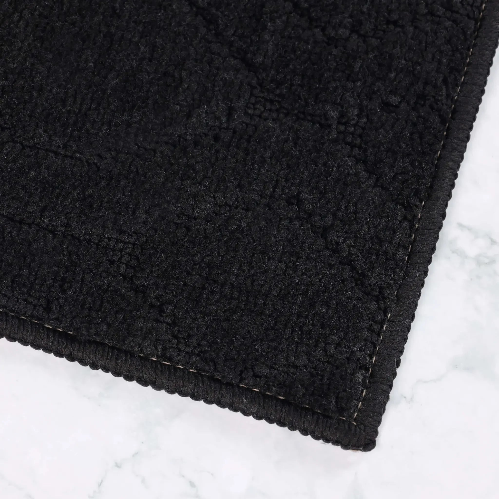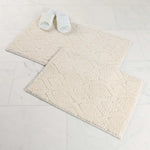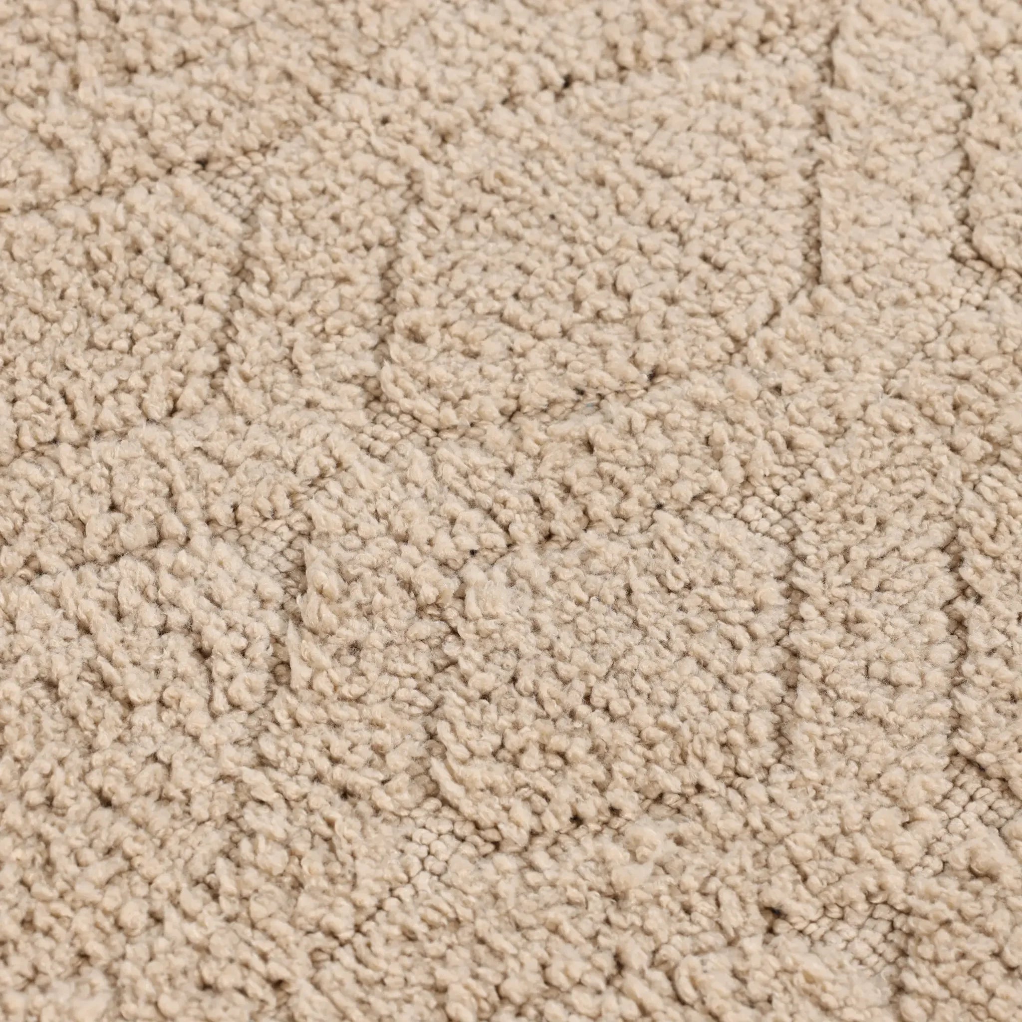 Infuse your bathroom with modern elegance with our Brou Diamond Lattice Bath Rug Set. This set of two rugs boasts a chic geometric pattern and a luxurious high-low pile that adds depth and texture to your space. Available in a range of sophisticated colors – White, Ivory, Beige, and Black – these rugs effortlessly complement any decor.