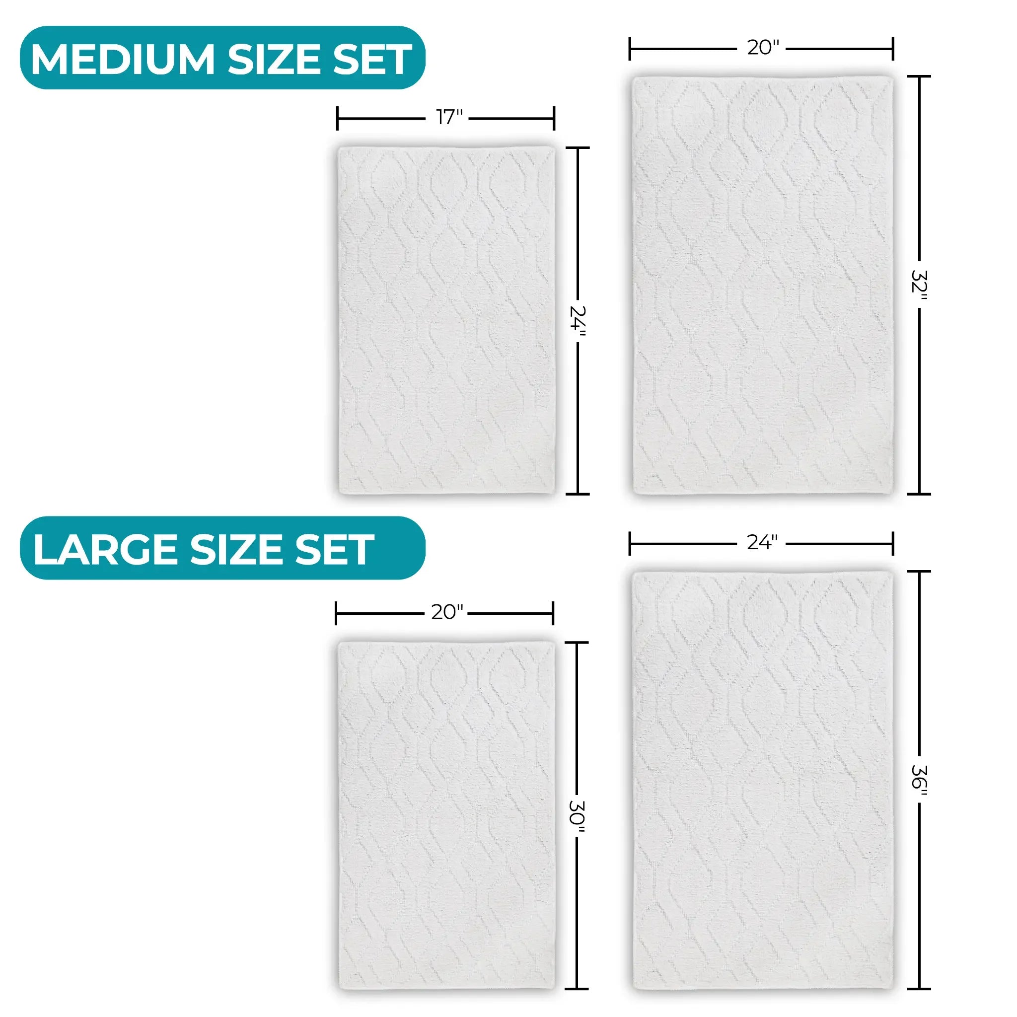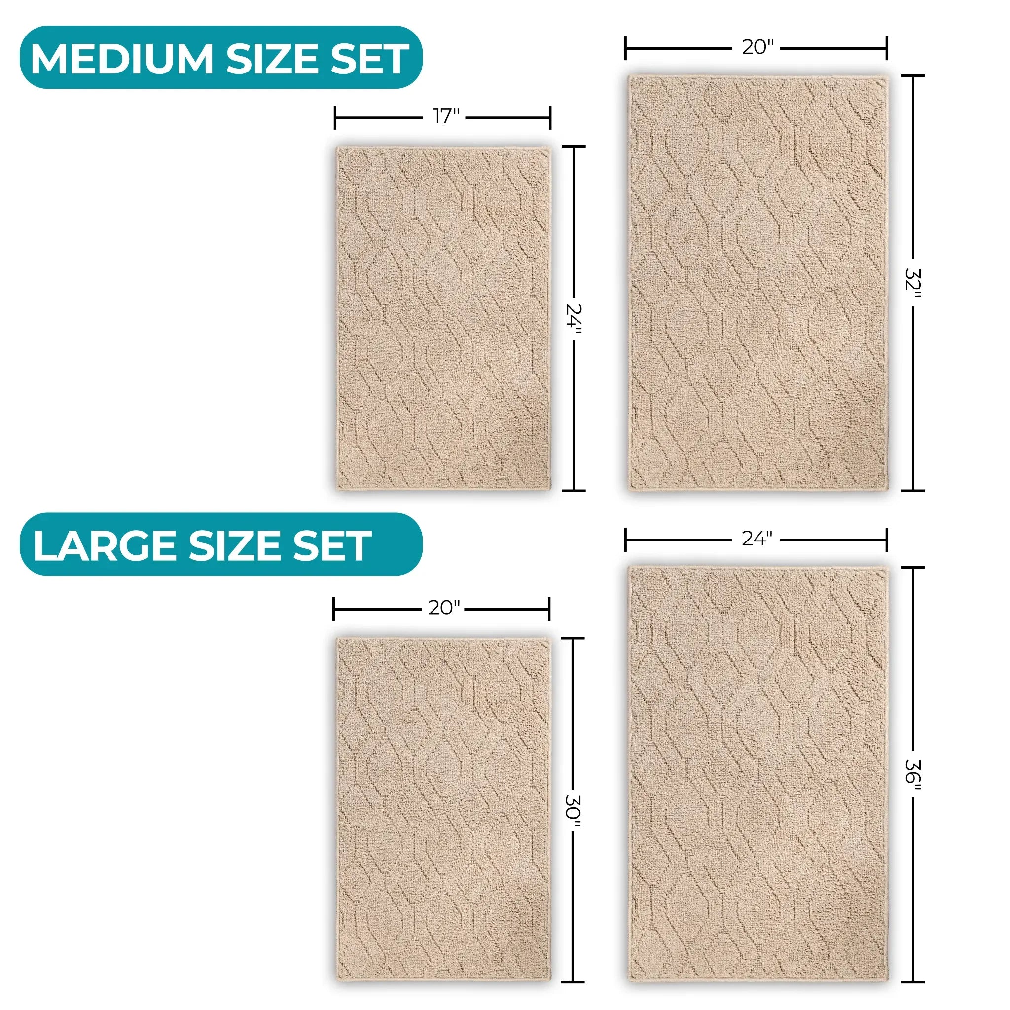 Large Bath Rug Set: 20" Wide x 30" Long, and 24" Wide x 36" Long.