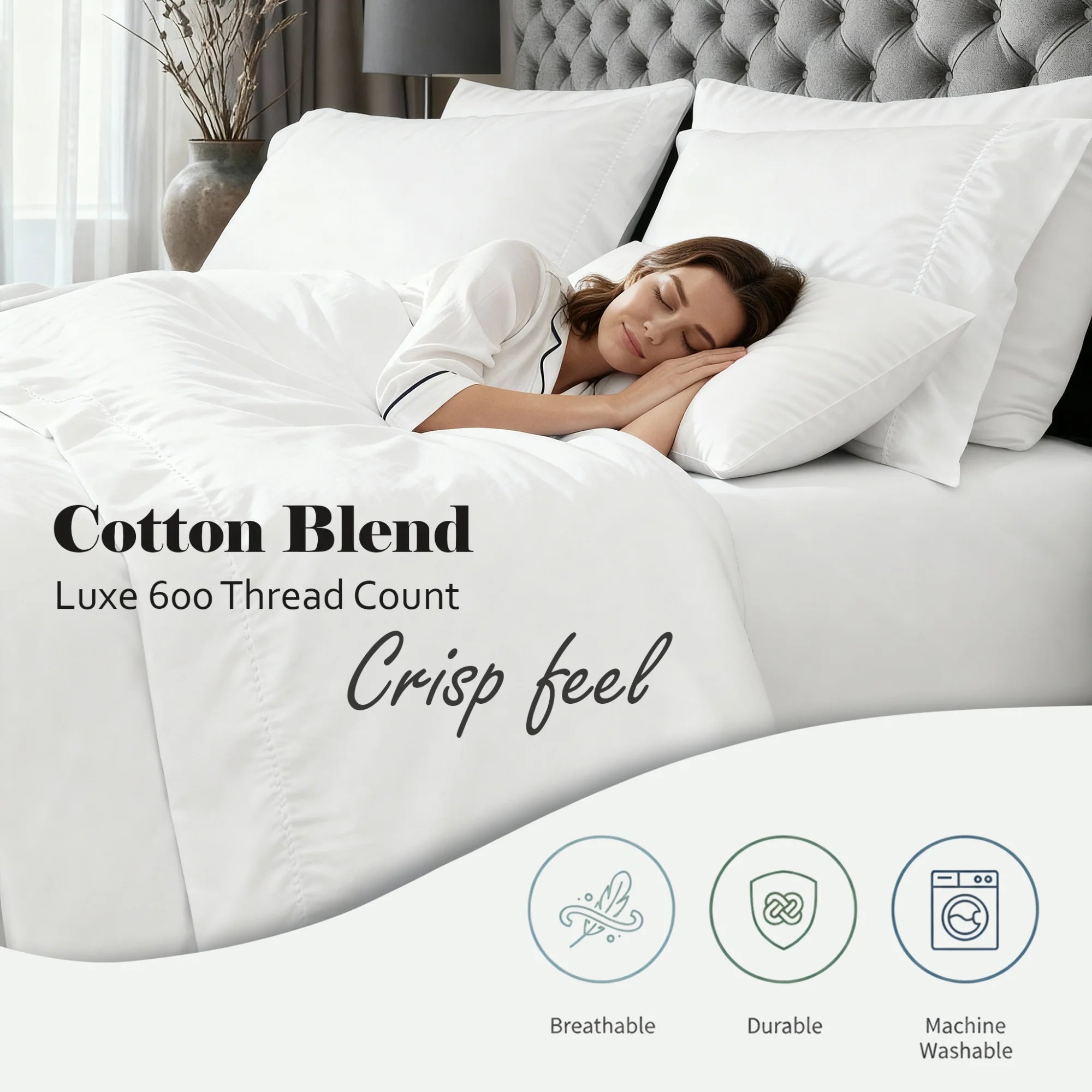 A cotton-rich blend is ideal for 600 thread count sheets, delivering both the crispness of natural cotton and the resilience of polyester. This combination in the Imperia set ensures breathability, color retention, and wrinkle resistance, making it practical for everyday luxury.