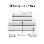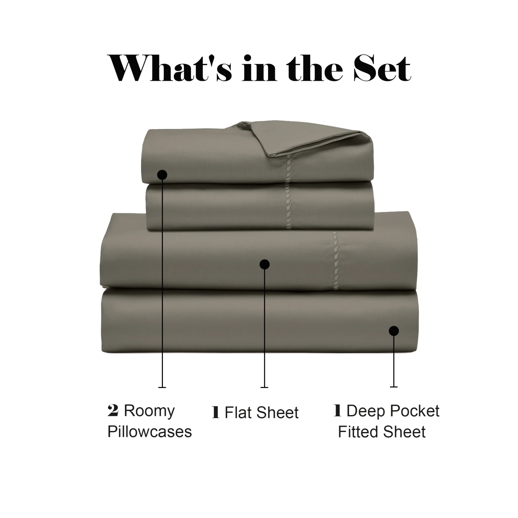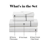 • Generously oversized deep-pocket fitted sheet is expertly tailored to accommodate modern mattresses from 15" to 18" deep, ensuring a secure and elegant fit without slipping.
