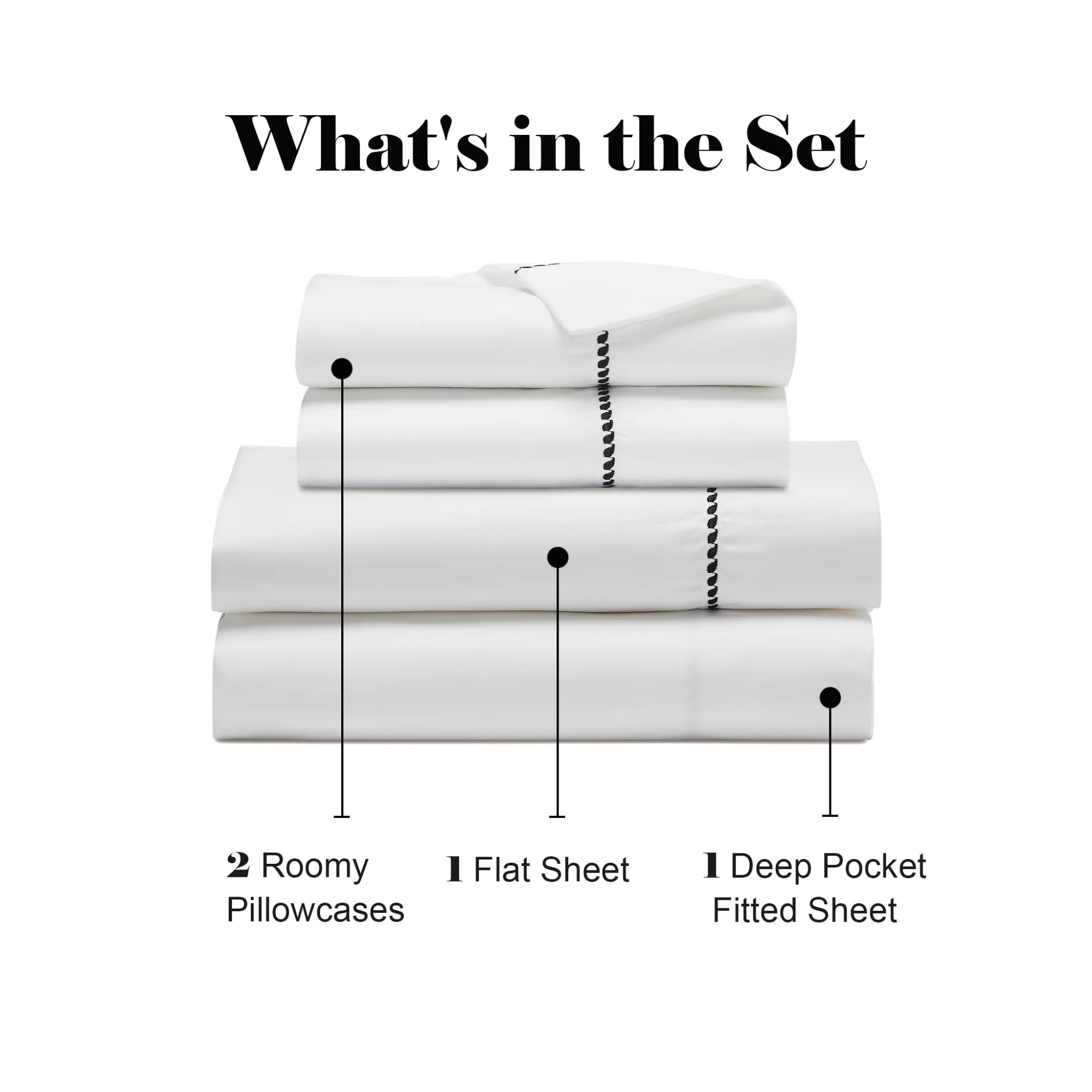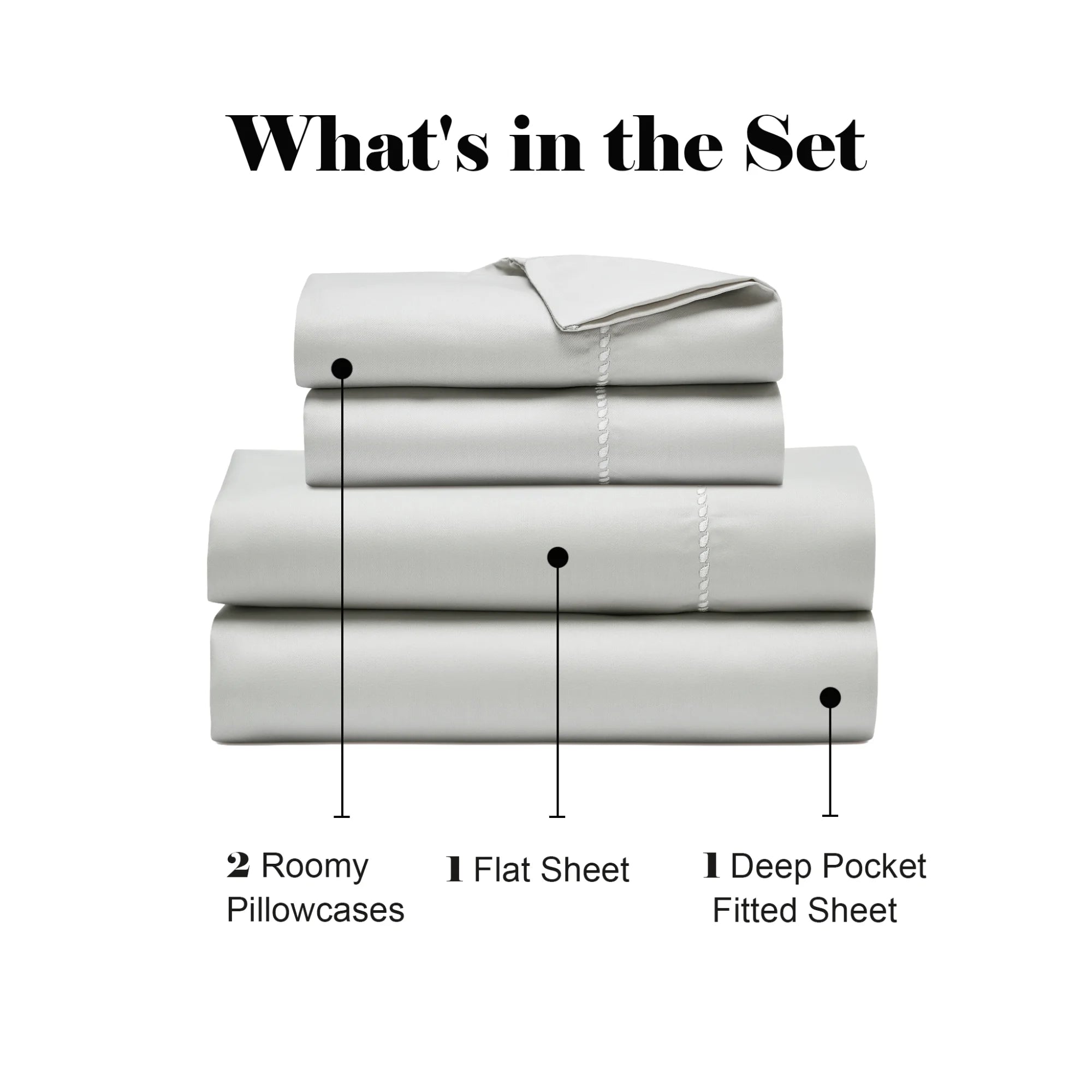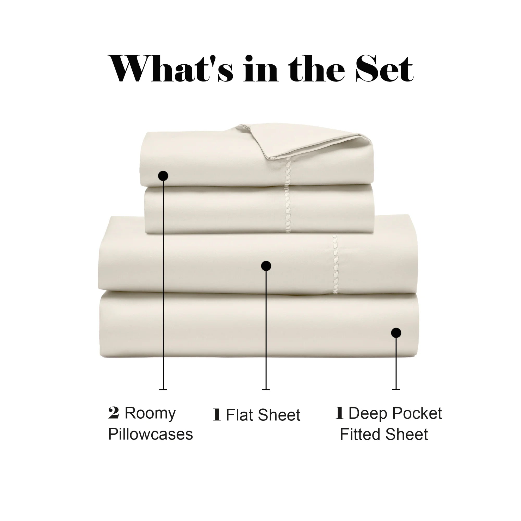 600 Thread Count Cotton Blend Bed Sheet Set - Imperia Embroidered Hem