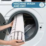 Designed for both comfort and practicality, the non-slip backing ensures safety on any surface. Machine washable for effortless care, these versatile rugs seamlessly transition from bathroom to bedroom, adding a touch of elegance to any decor. Indulge in the ultimate comfort and style of these exquisite bath rugs, designed to elevate your everyday and transform your home into a haven of tranquility.