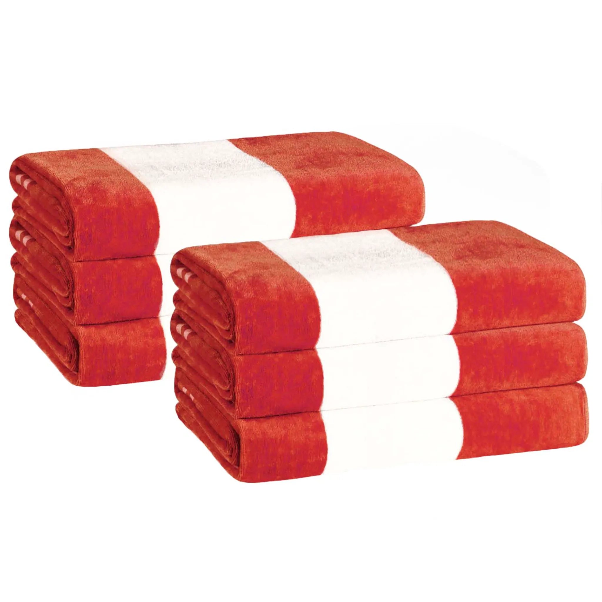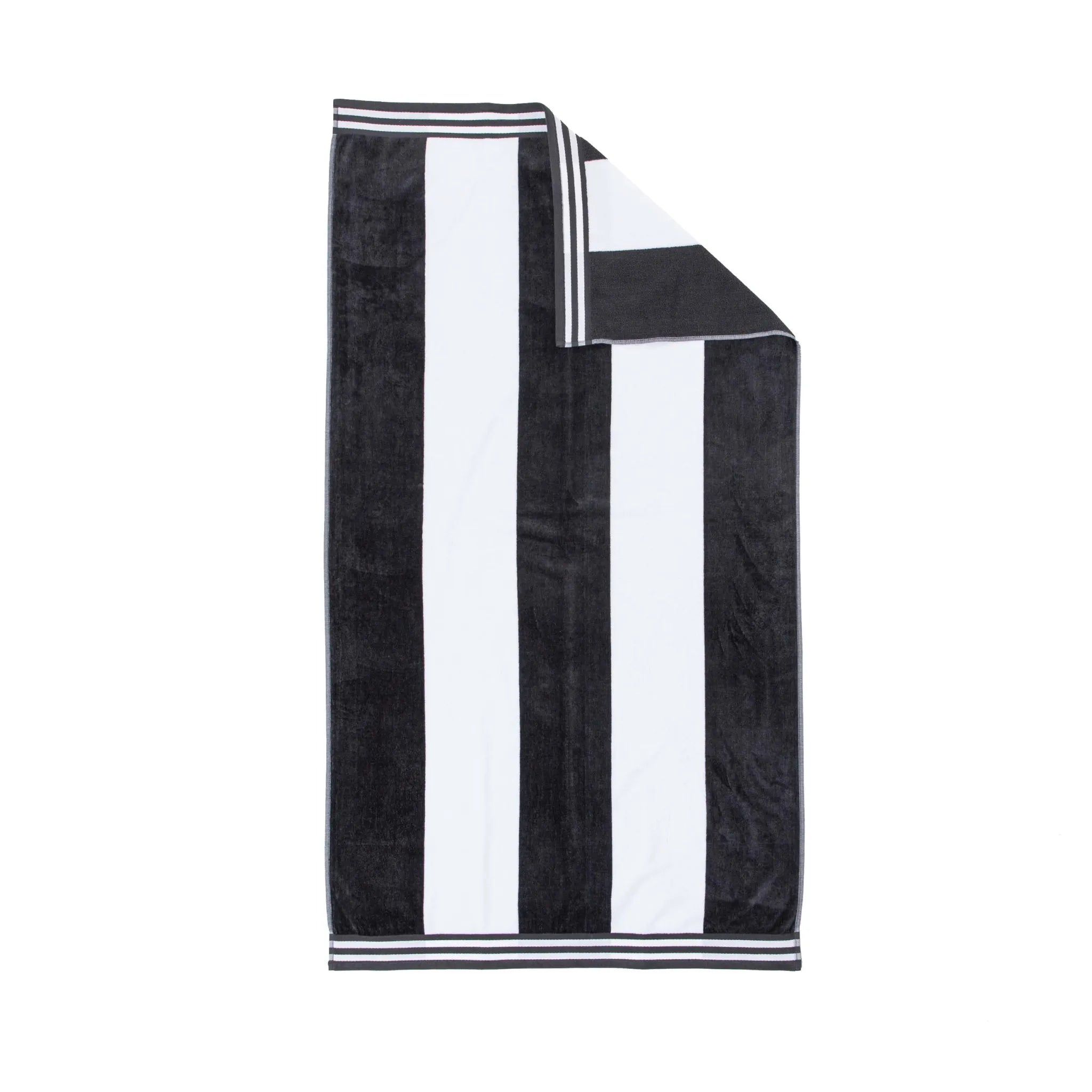 Crafted from premium cotton, these oversized beach towels for adults feature a soft velour surface for lounging and a terry reverse for effective drying. With bold stripes in festive colors, they bring a playful yet timeless aesthetic to any poolside, beach, or backyard setting.